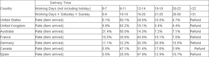 Дорогие друзья, на картинке ниже показано время доставки в некоторых странах. Из-за сложности международной логистики время может зависеть от некоторых других факторов.