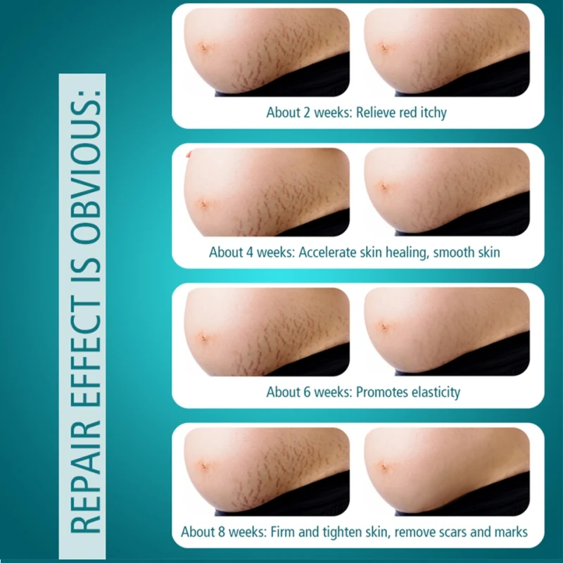 1.This product can effectively remove stretch marks, increase cell elasticity by promoting cell regeneration, effectively repairing necrotic tissue, stretch marks, and improving skin color texture.