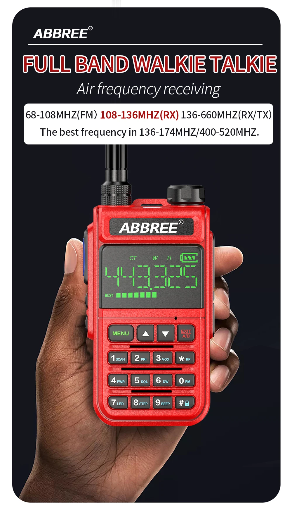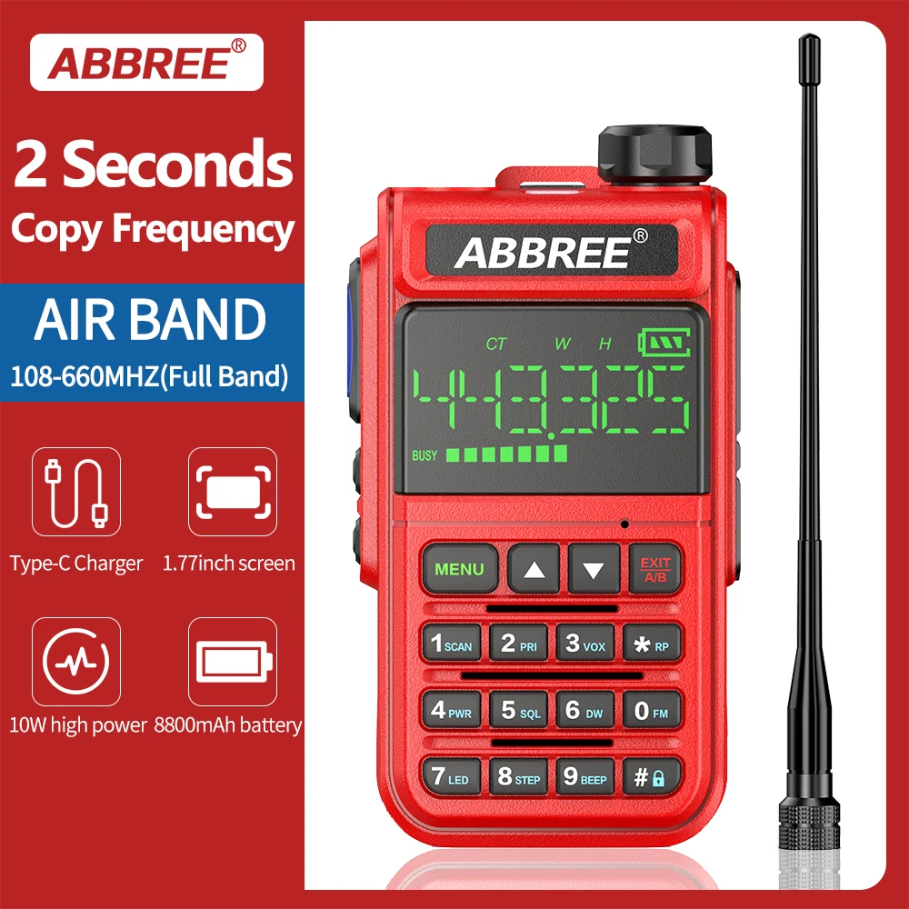 ABBREE AR-518 Air Band 108-660 МГц полнодиапазонная Беспроводная Частота копирования мощный