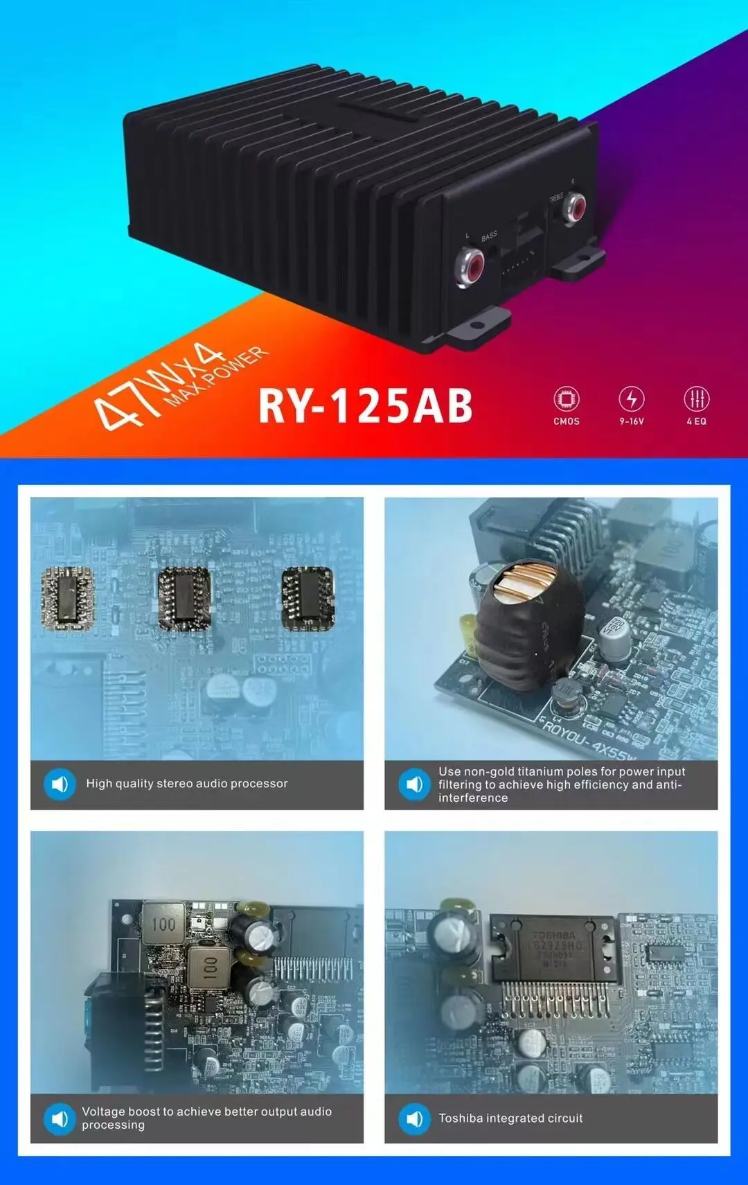 У него есть такие функции, как улучшение звука, высокая и низкая Регулировка голоса и т. д.