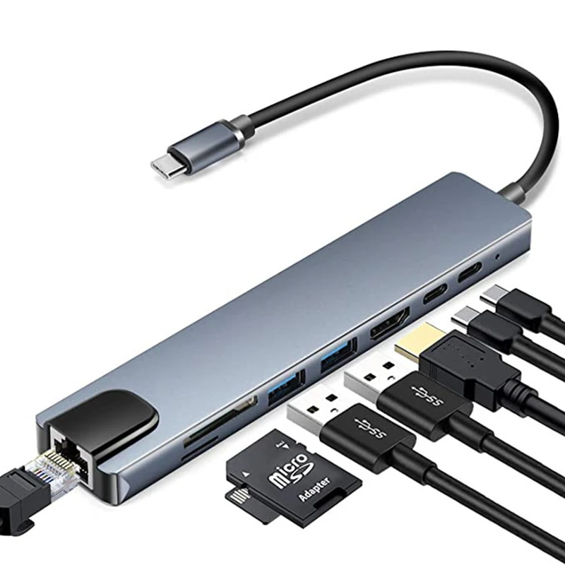 Тип 2: Type-C к HDMI/RJ45/USB 3,0*2/USB-C * 2/SD/TF;