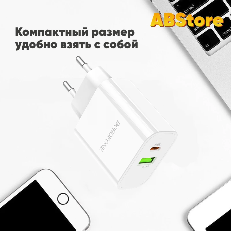 Сетевое зарядное устройство Borofone BA55A USB QC 3.0 + Type C Power Delivery.