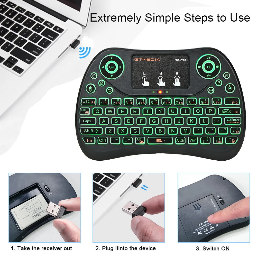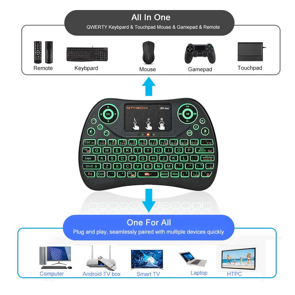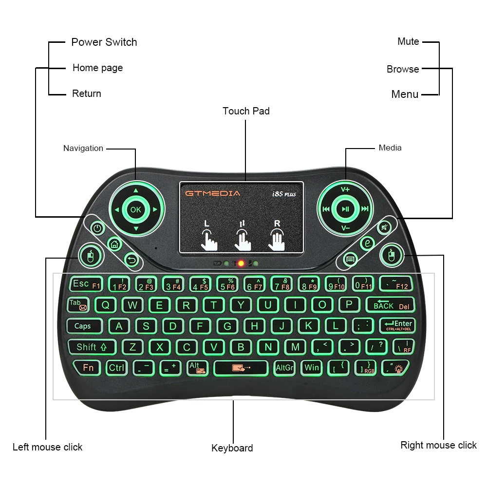 I8S PLUS 2,4G мини беспроводная клавиатура для ноутбука/Smart TV с сенсорная панель с подсветкой Эргономичный дизайн мультитачпад Qwerty клавиатура