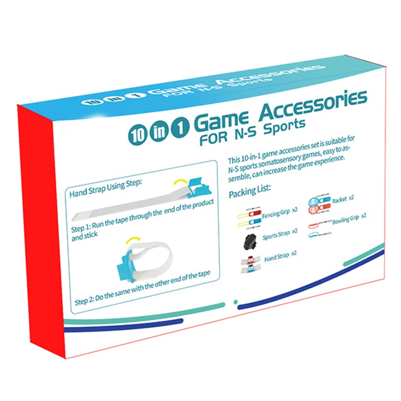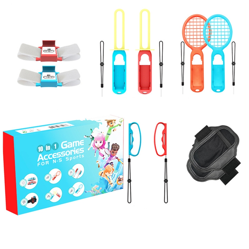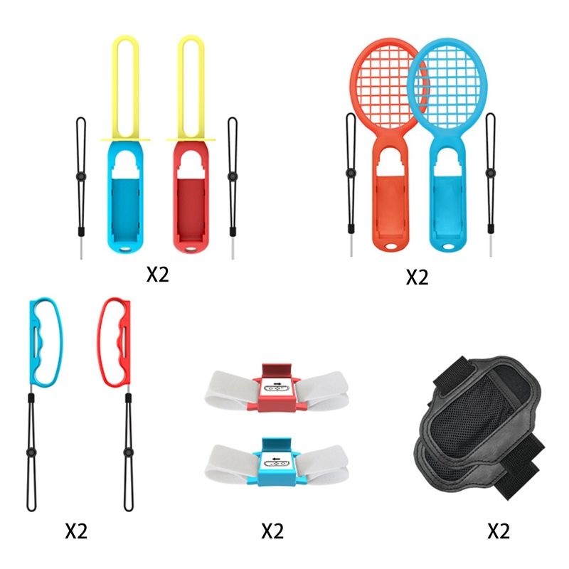 Характеристики: набор игровых аксессуаров 10 в 1, включает в себя теннисную ракету, игровую рукоятку, игровой меч, ремешок на запястье и ремни для ног.