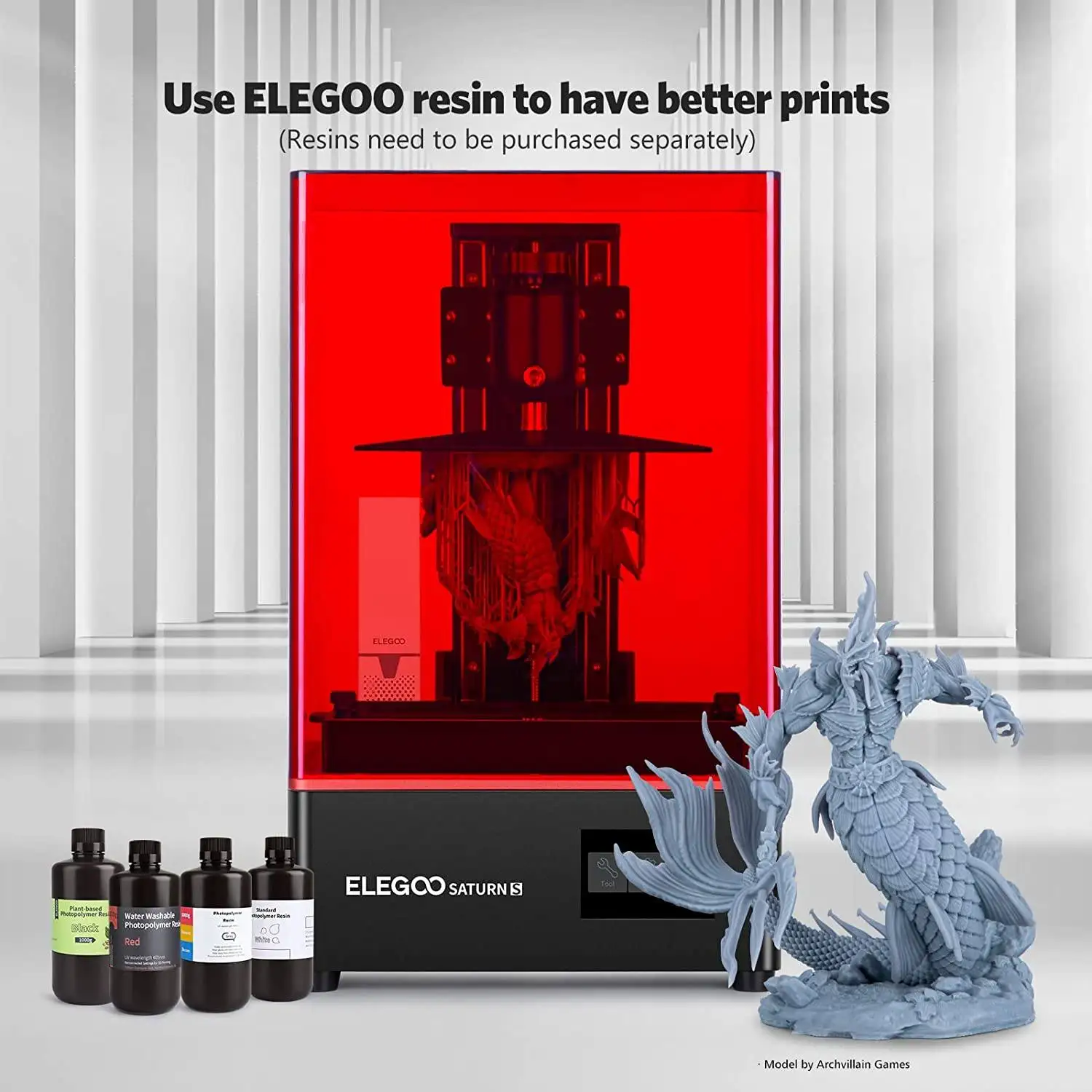 【Faster Printing】Saturn S 3D принтер поставляется с 9,1 с разрешением 4K HD монохромный ЖК-дисплей 4098x2560 разрешение, что сокращает время печати на один слой до 2s-3s и восстанавливает яркие детали оригинальных моделей. Низкое энергопотребление и теплоотдача продлевают срок службы моно ЖК-дисплея в 3 раза.