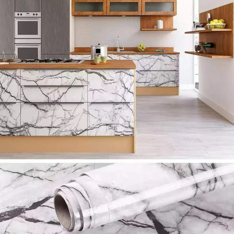 «Глянцевые мраморные обои»-Очистите счетчик полотенцем. После установки Защелкните шов между задней частью и прилавком. Выглядит более реалистично и охватывает любые видимые счетчики. Легко протирать влажной тканью.