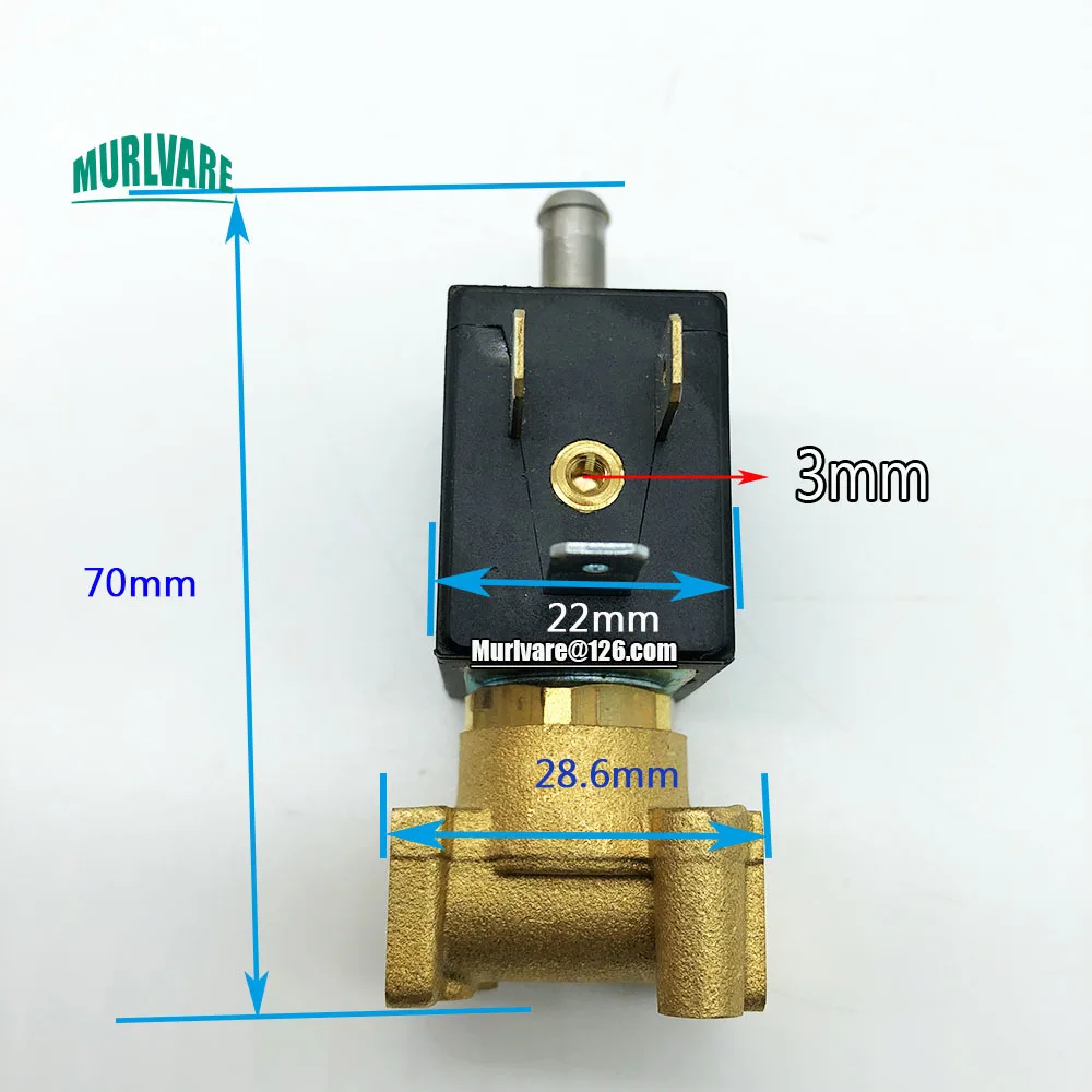 Normally open solenoid valve body inlet is 1/8 internal thread interface, outlet is about 6-7mm diameter interface, outlet inner hole is 3mm