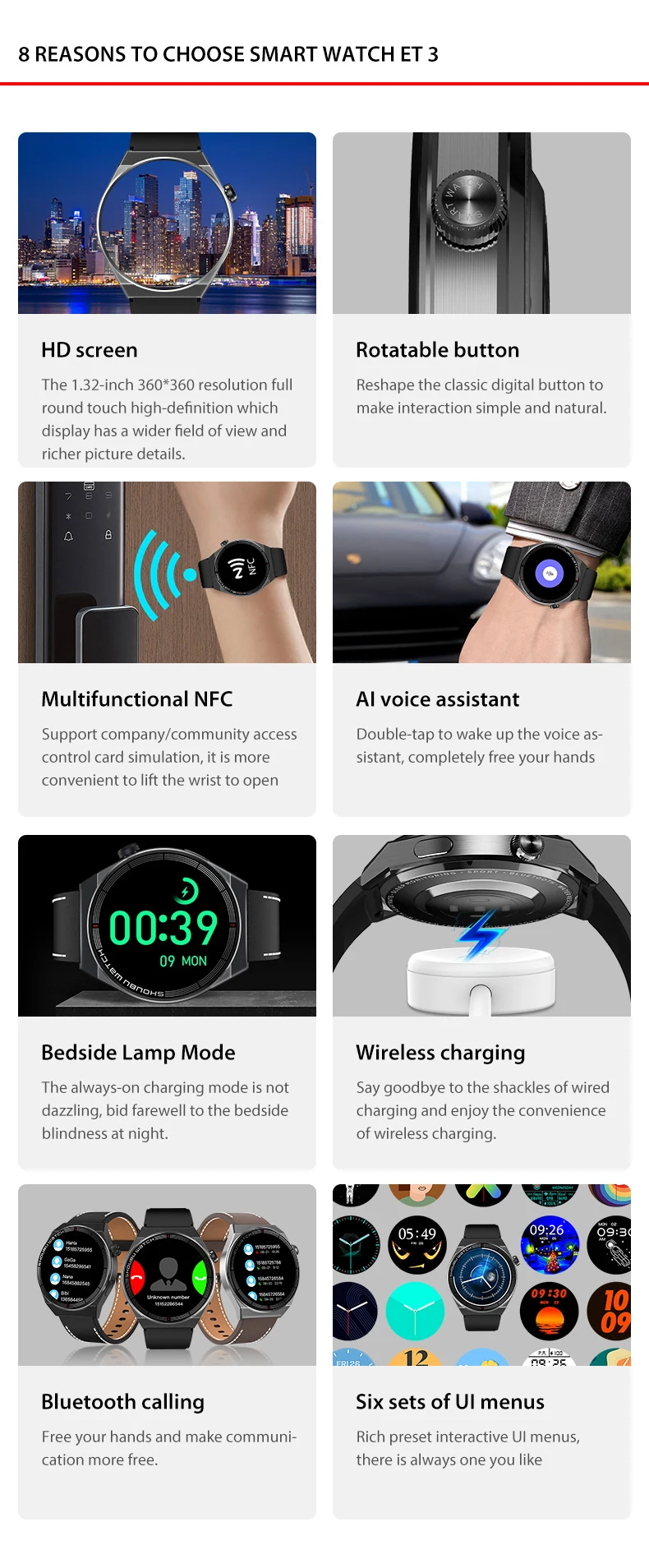 Смарт-часы LEMFO, мужские часы с Bluetooth и вызовом ET3PRO NFC, умные часы 2022 IP67, водонепроницаемые спортивные часы, аккумулятор 300 мАч, 1,32 дюйма, 360 * 360HD