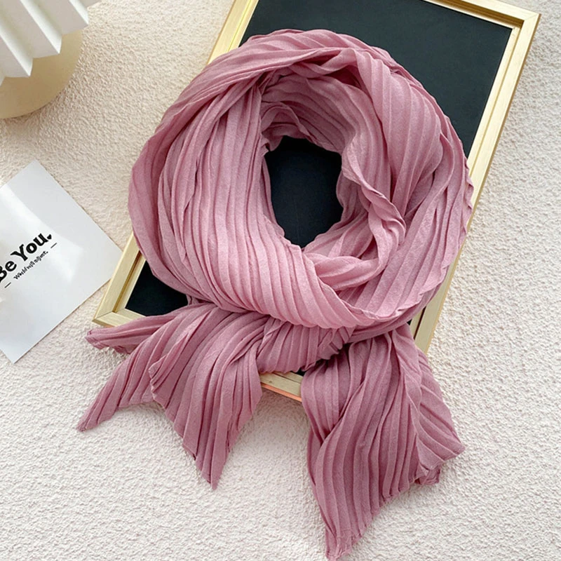 Плиссированный шарф, декоративный головной платок, длинные шарфы, хлопок, лен, шаль, шарфы для женщин, хиджаб, мусульманская повязка на голову, сплошной цветХарактеристика: