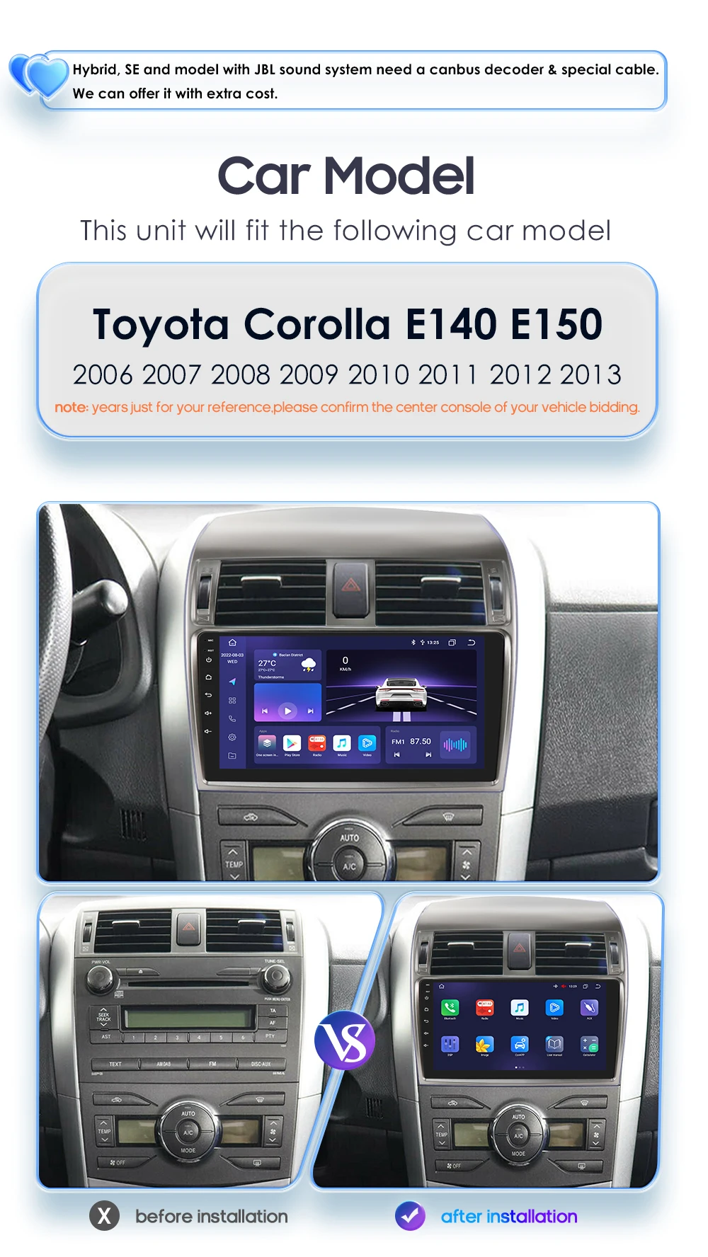 Android 12 Автомобильный Радио Мультимедийный видео плеер для Toyota Corolla E140 E150 2006 - 2013 Авто Аудио Carplay 4G WIFI 2din головное устройство