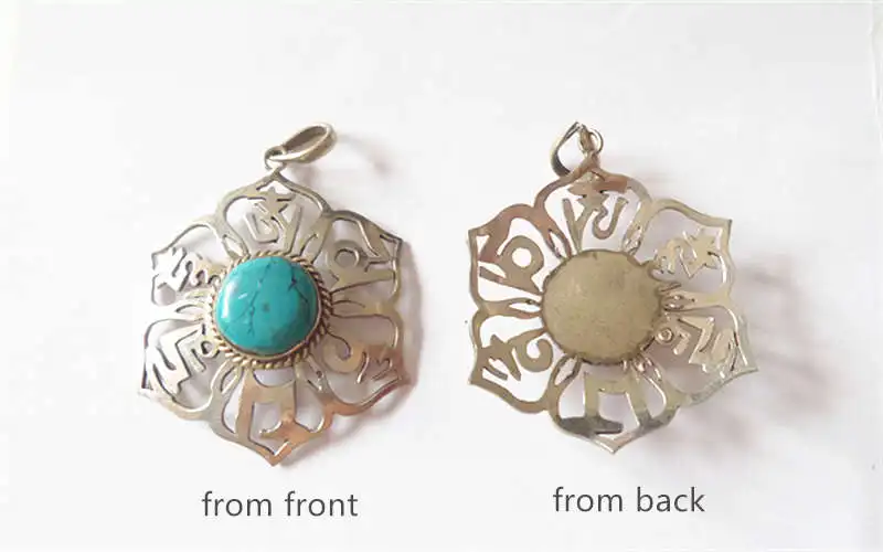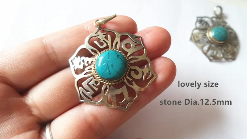 Тибетские шесть слов мантры амулет медь инкрустация бирюзовый цветок Полые Подвески