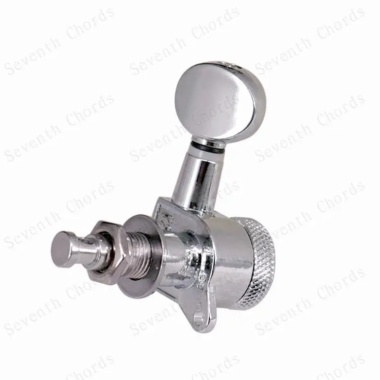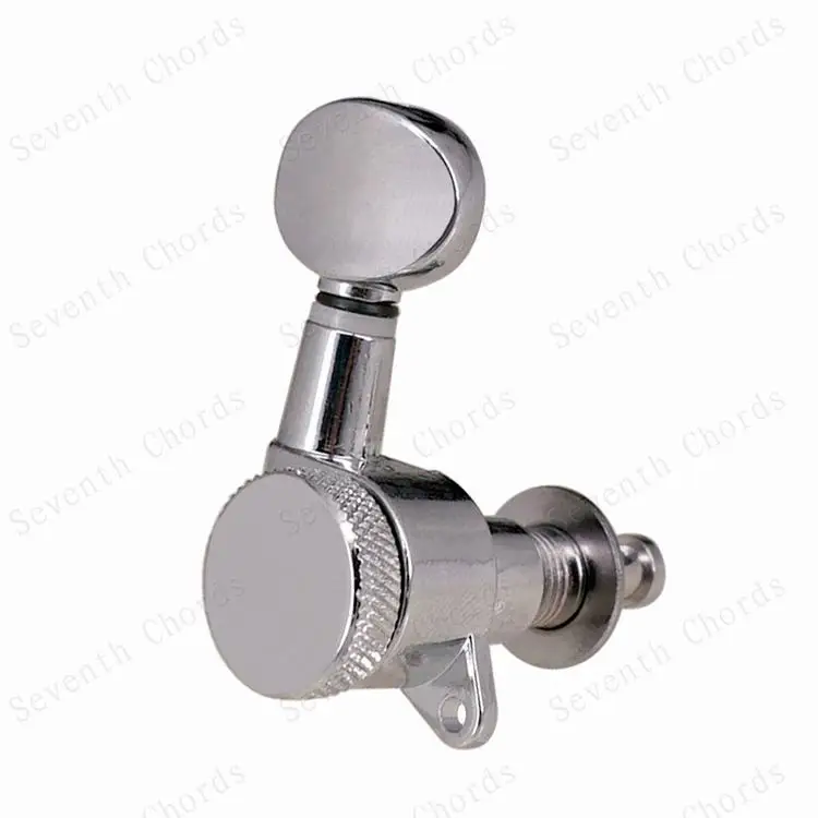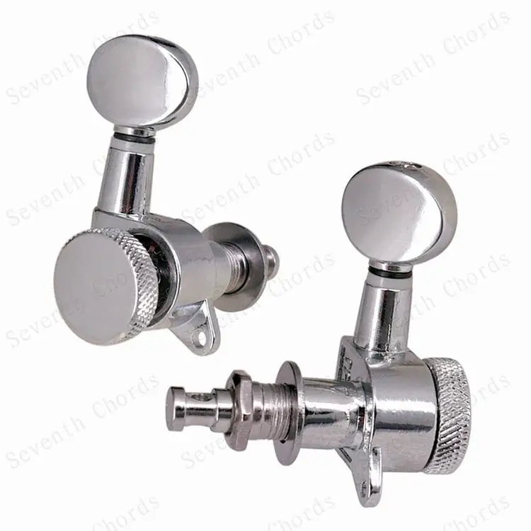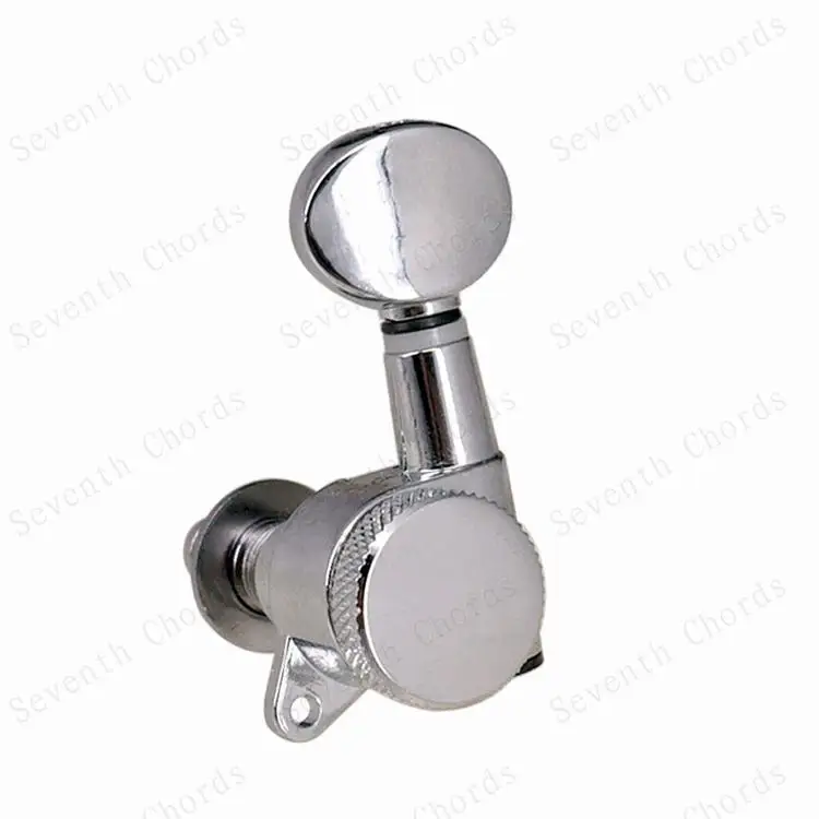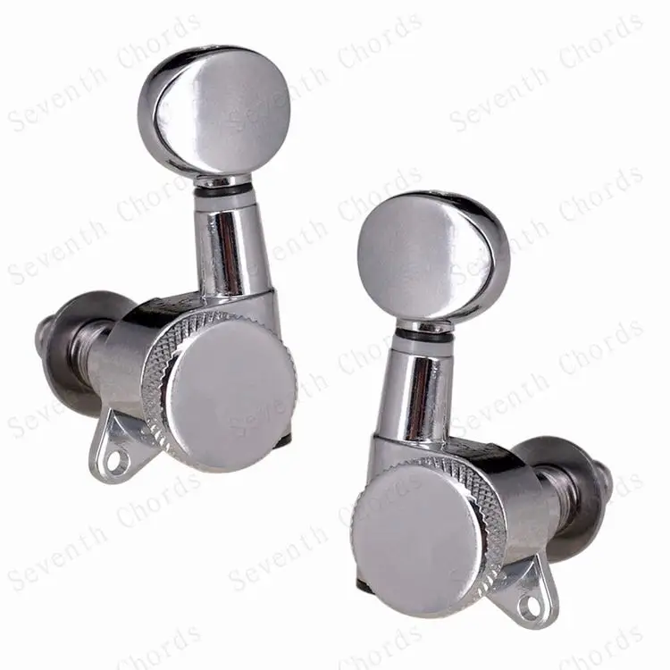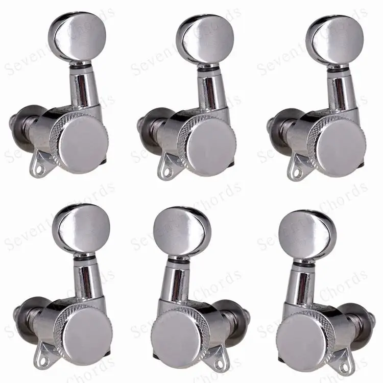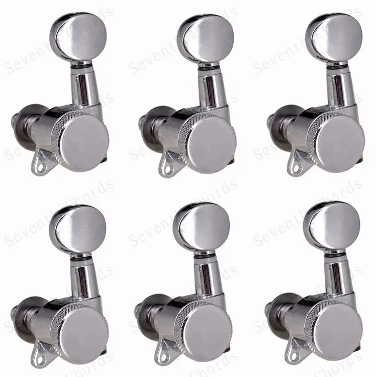 Набор из 6 хромированных головок для стальных струн (электрических или акустических) гитар Теперь у вас больше нет беспокойства о том, как упаковать для обработки гитары, фортепиано маленький стук маленькой сенсорной кнопки и позволить струнам выйти из мелодии! Гитара не отключается, если вы правильно зафиксируете винт при настройке гитары. Качественные герметичные головки машины Авто блокирующие тюнеры (тюнинговые колышки) Сверхмощная Внутренняя Шестерня Цвет: серебристый (хромированный) Передаточное отношение: 1:15 Расположение: 6R & 6L & 3L3R & 2L4R & 4L2R на выбор Посылка включает в себя: 6x колышки для настройки гитары 6x наконечник 6x Резьбовая втулка 6 x винт