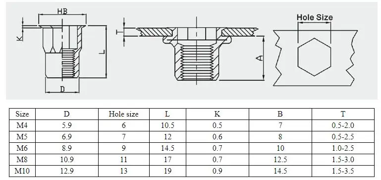 Углеродистая сталь, заклепочная гайка с шестигранной головкой