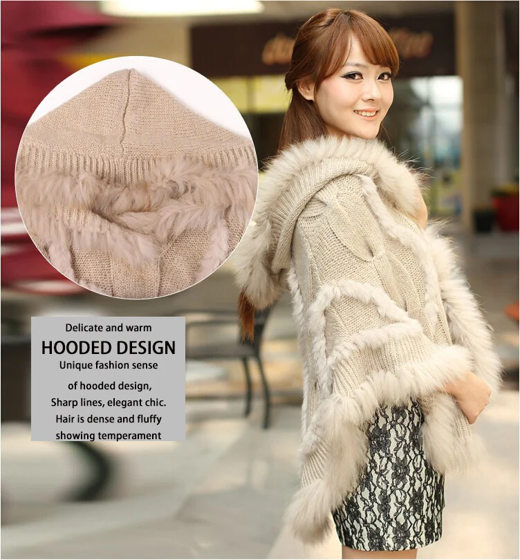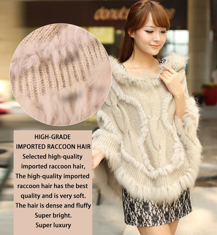 FXFURS 2020 Осенняя теплая накидка из меха енота вязаное меховое пончо Женский модный меховой свитер с меховыми полосками, бесплатная доставка--- Детали продукта ---