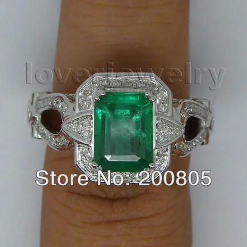 2.77Ct Solid 14kt White Gold Natural Diamond Emerald Ring