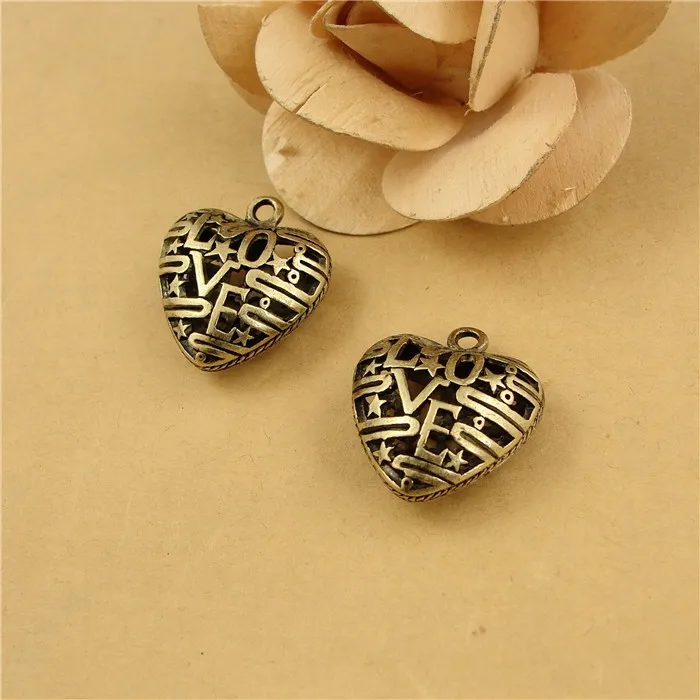 A1096 фурнитура из цельного сплава, Очаровательные Подвески, старинное стильное бронзовое сердце, ювелирные изделия 29*26*13 мм DIY ретро аксессуары