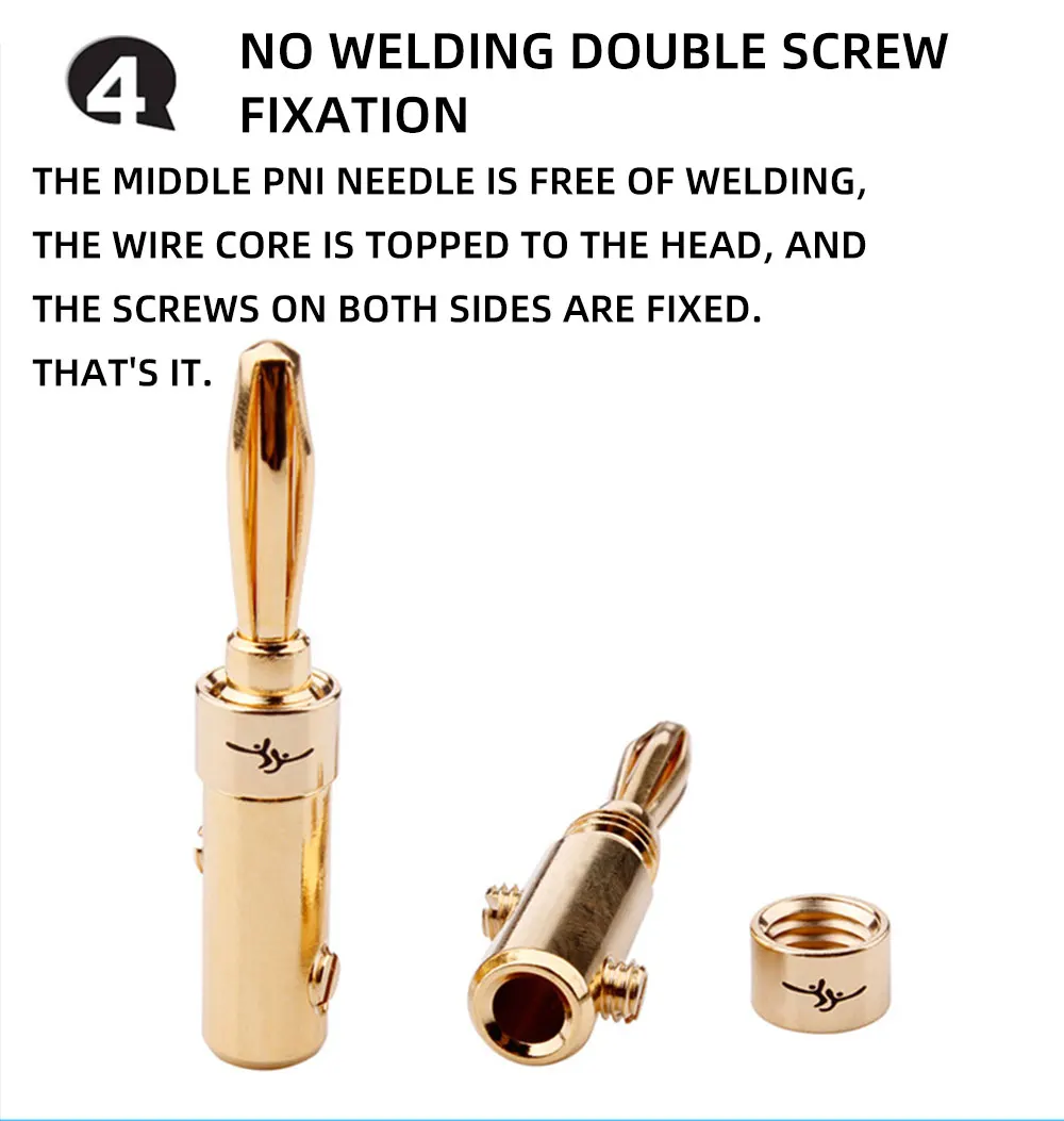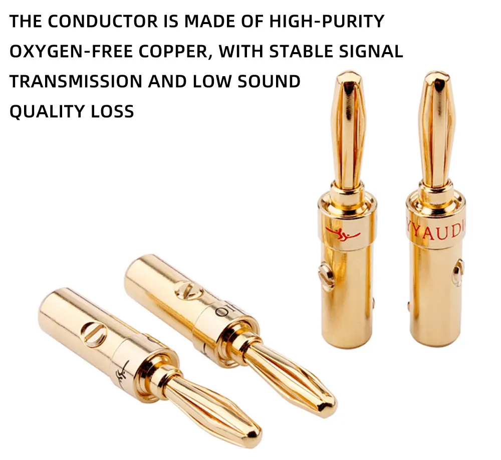 Штепсельная вилка типа «банан», 4 мм, медные позолоченные штепсельные вилки типа «банан» для акустического кабеля, провод, разъем типа «банан», адаптер, 8 шт., переходник для вилки типа «банан»