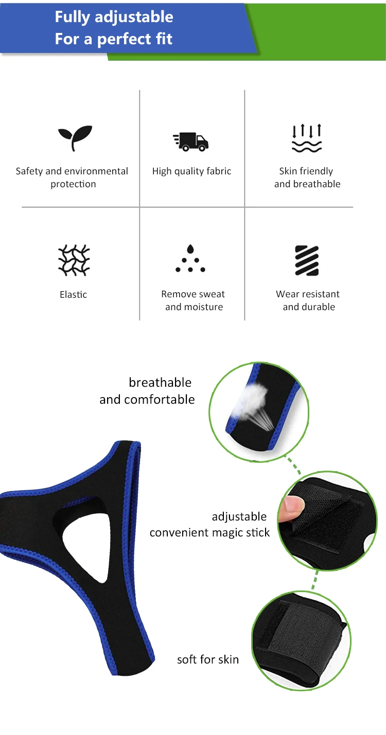 Остановить храп подбородка ремень анти апноэ челюсти решение сна, OEM неопрена подбородка медицинской поддержки ремень. Изготовлен из высококачественного легкого дышащего неопрена (гидрокостюм). Ремешок на застежке-липучке в верхней части головы обеспечивает универсальный размер.