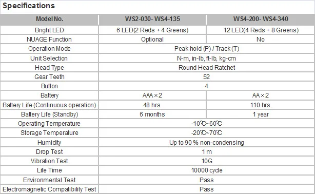 | WS3-085CN | 3/8 | 271 | CW: +/-3% | 85N-m | 4,2 ~ 85 N-m | 0,1 Н-М | Нет |
