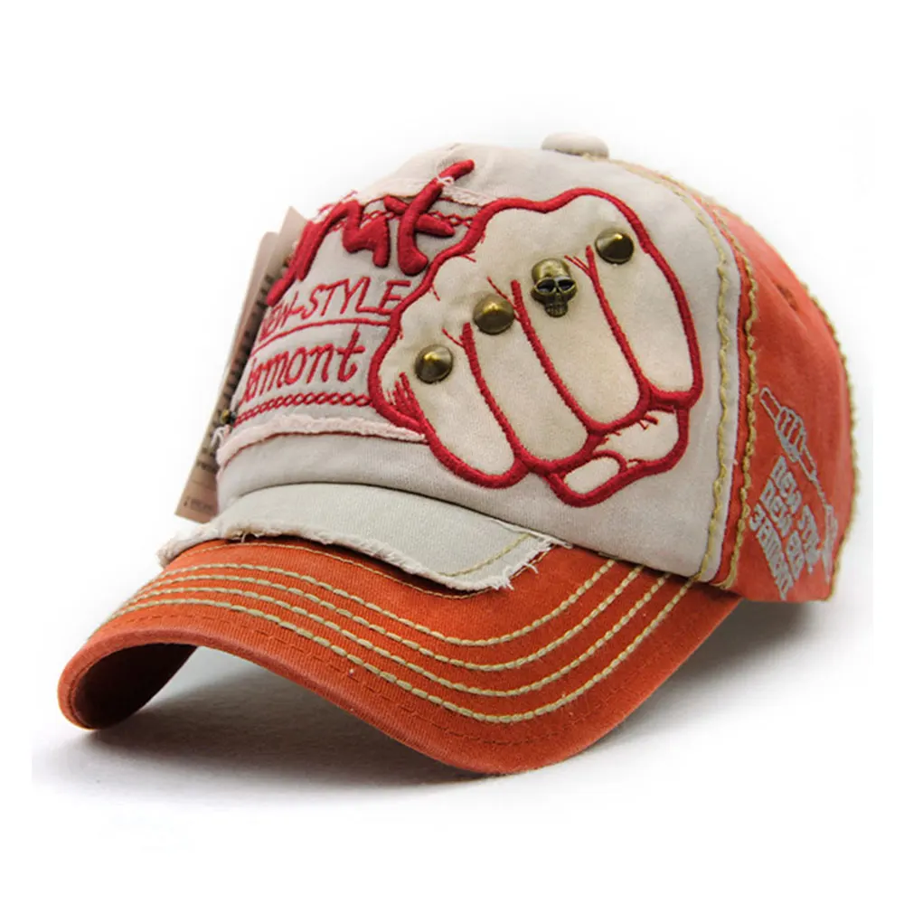Винтажная модная бейсболка, потертая кромка, вышивка логотипа, декорирование заклепками, контрастность цвета, все добавляют вам стильнее и прохладно.