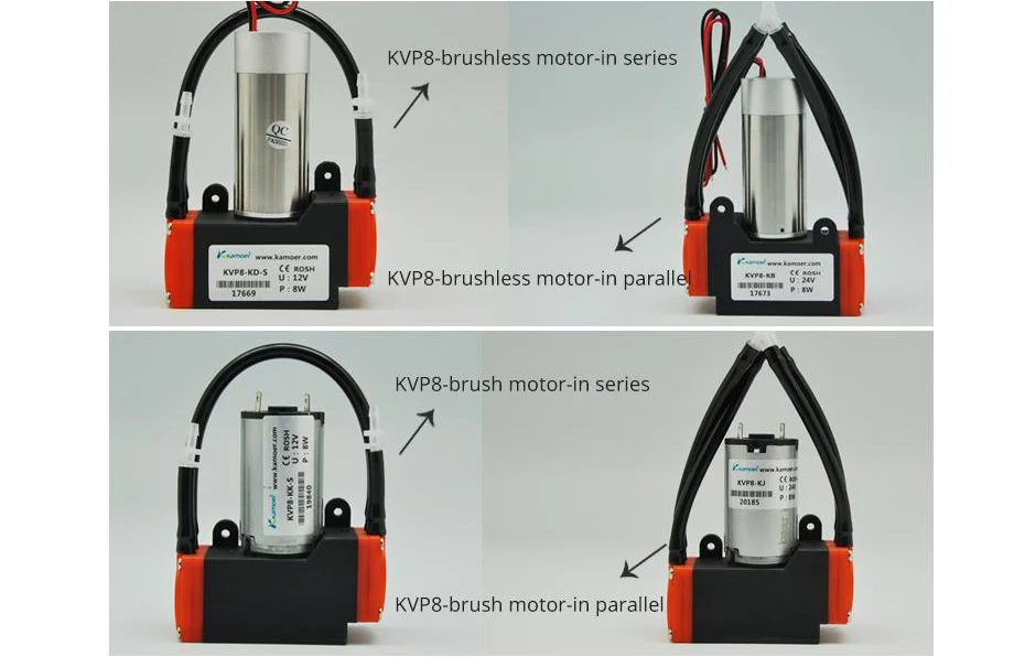 Difference разница 1: срок службы Мотор щетки: 2000 H VS бесщеточный мотор 6000 H Difference разница 2: давление и расход Серия: высокая степень вакуума-0,082 МПа Параллельно: высокая скорость потока 480 л/ч
