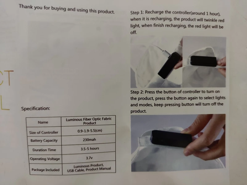 1. Материал: Волоконно-оптическая ткань