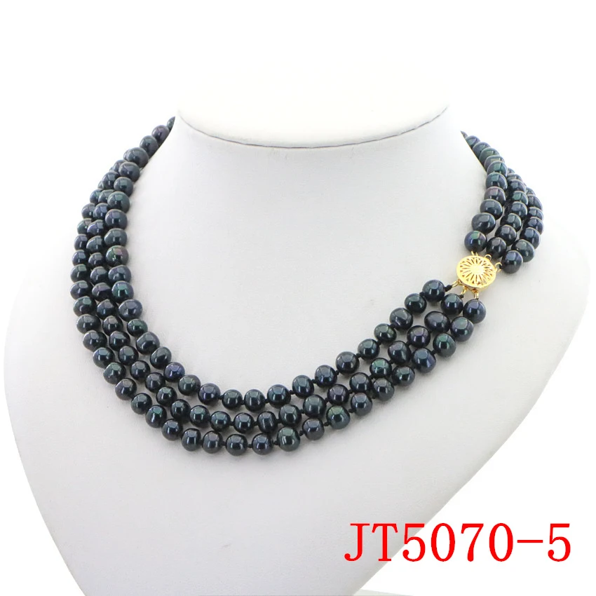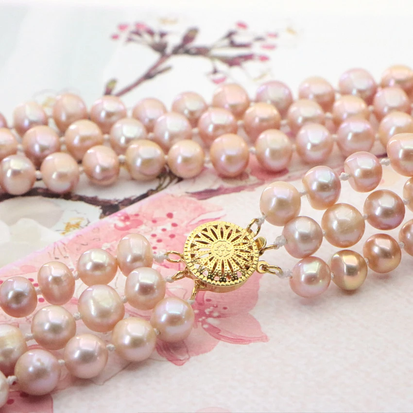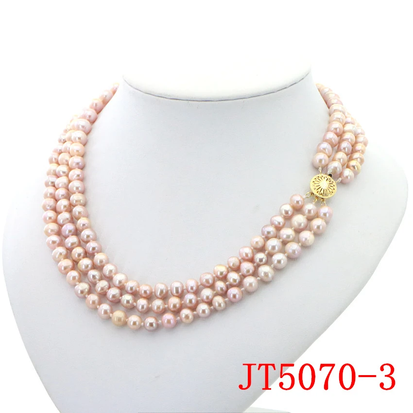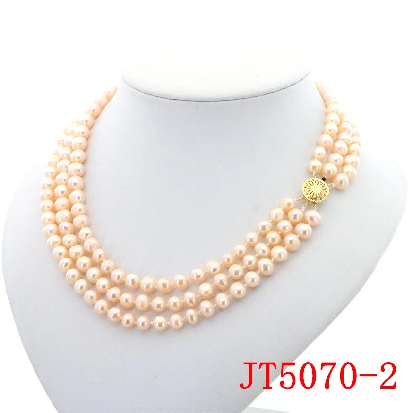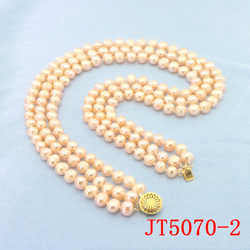 Очаровательное ожерелье из белого пресноводного жемчуга диаметром 7-8 мм 3 ряда