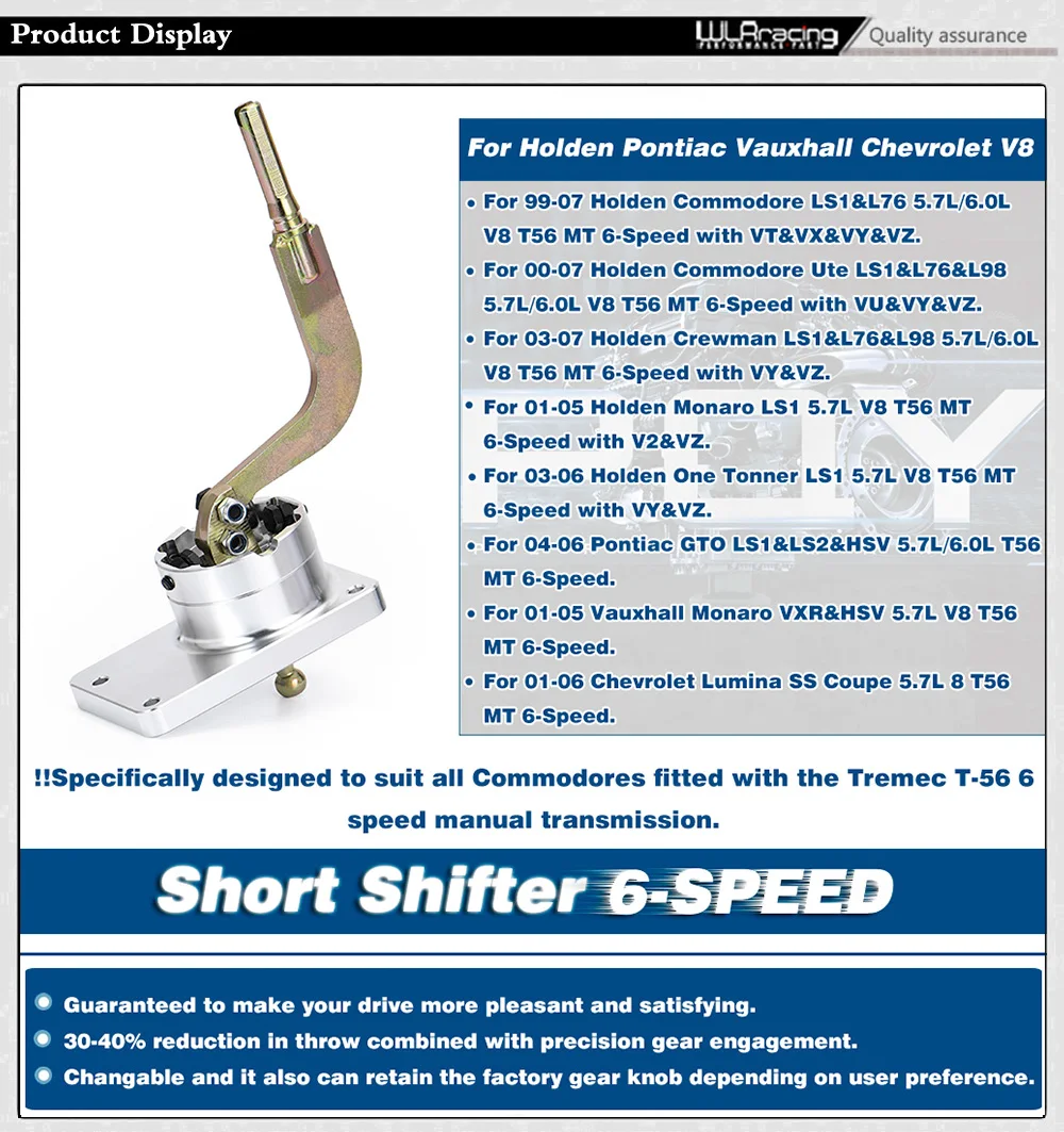 WLR RACING-Новый короткий переключатель для Holden Commodore VT VU VX VY VZ LS1 V8 T56 Короткий рычаг переключения передач СЕРЕБРЯНЫЙ СОВЕРШЕННО НОВЫЙ HSV WLR5390Заявка:- Для CHEVROLET Lumina SS Coupe 01-06 V8 5.7L 6-ступенчатая T56 Borg-Warner Manual / Standard