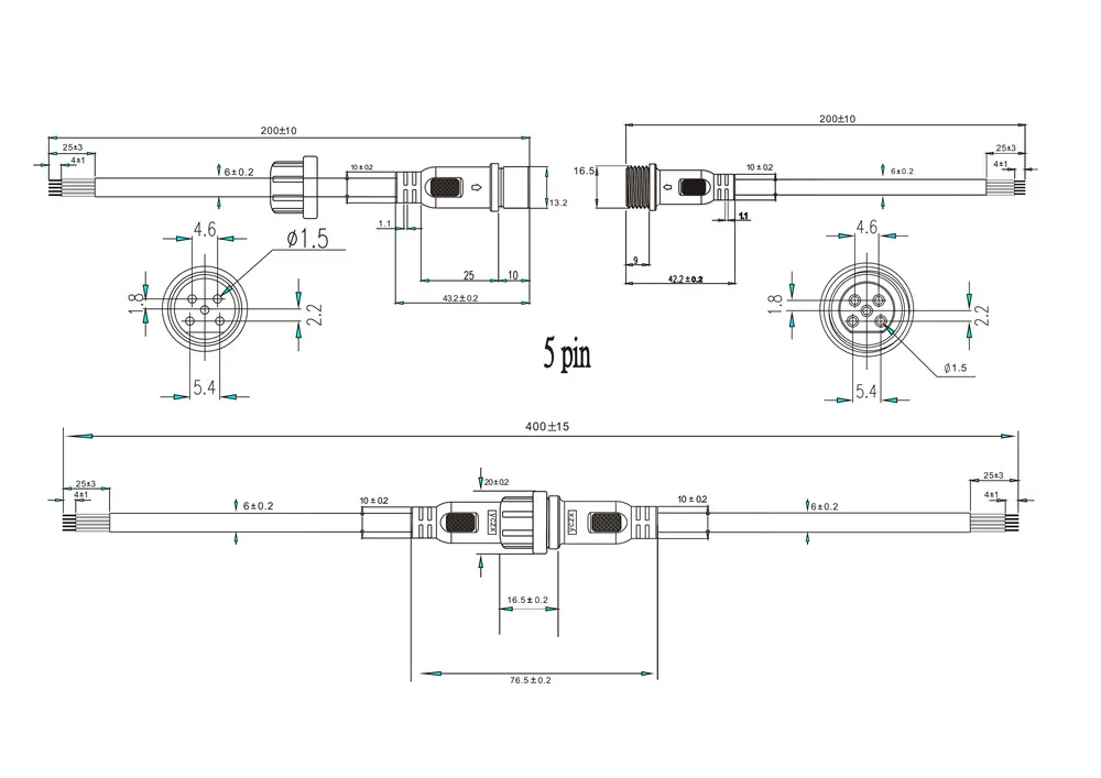 5Pin 22AWG 5x0.3mm ² Максимальный ток: 2A
