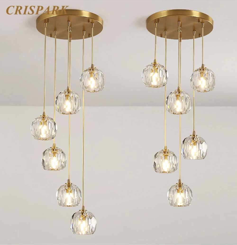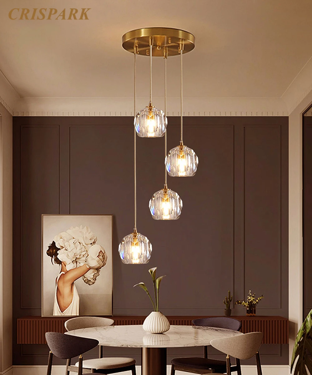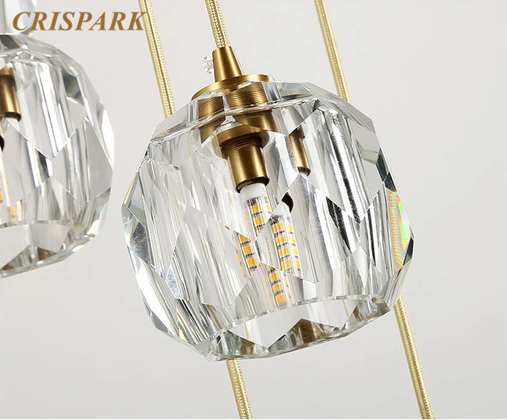 Современный латунный СВЕТОДИОДНЫЙ светильник для люстры, Кристальный подвесной светильник для кухни, скандинавский обеденный стол, светильник для помещений