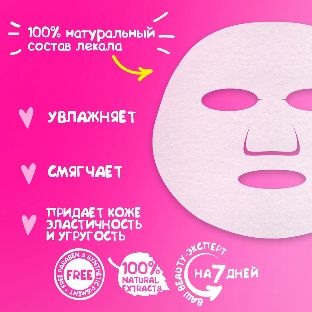 3. Ополосните лицо водой. При желании остатки средства можно не смывать. Для заметного улучшения состояния кожи, рекомендовано использовать всю серию масок «7DAYS» в течение недели. Маска также подходит для разового применения в качестве экспресс-ухода.