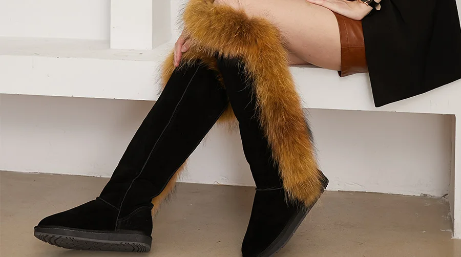 "Уважаемый Клиент: Спасибо за выбор компании INOE, мы уверены, что данный сапоги с опушкой из натурального лисьего меха, не из искусственного меха (если мех искусственный, мы можем вернуть вам 300% суммы!) сапог выполнен из натуральной коровьей кожи, не полиуретан (если кожа полиуретан, мы можем вернуть вам 300% суммы!) Репутация нашей компании важна для нас, поэтому мы гарнтируем высокое качество продукции для всех клиентов!" С уважением, Крис ли ------------------------------------ Меховая отделка: натуральный густой лисий мех Материал верха: натуральная коровья замша Внутренний материал: высококачественный синтетический мех Более 10 видов цвета на выбор