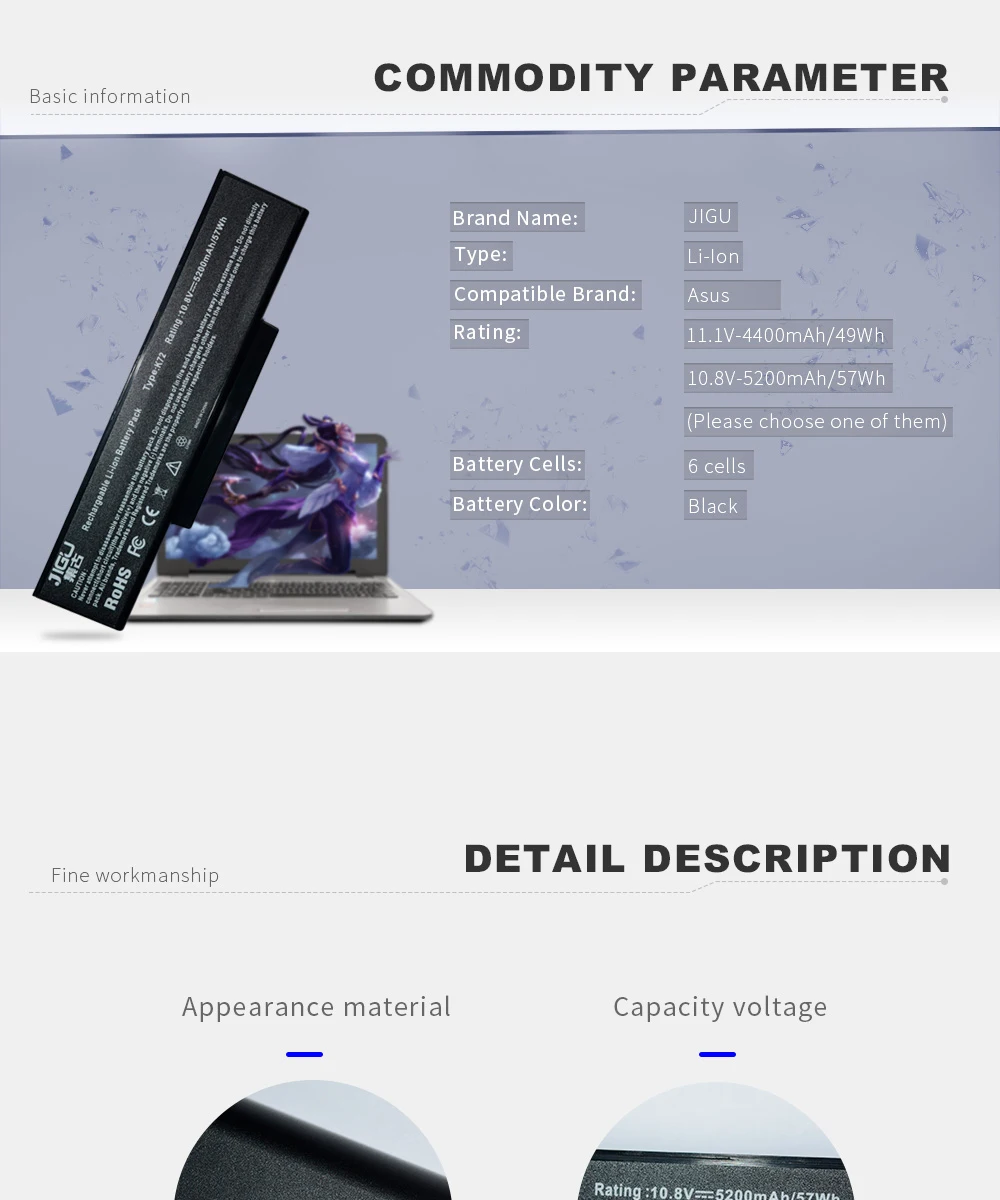 Название:JIGU 6 ячеек Аккумулятор для ноутбука Asus A72 A72D A72DR A72J K72 K72D K72F K72J K72JA A32-K72 K72S