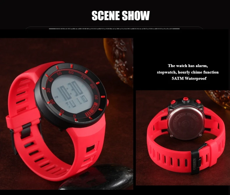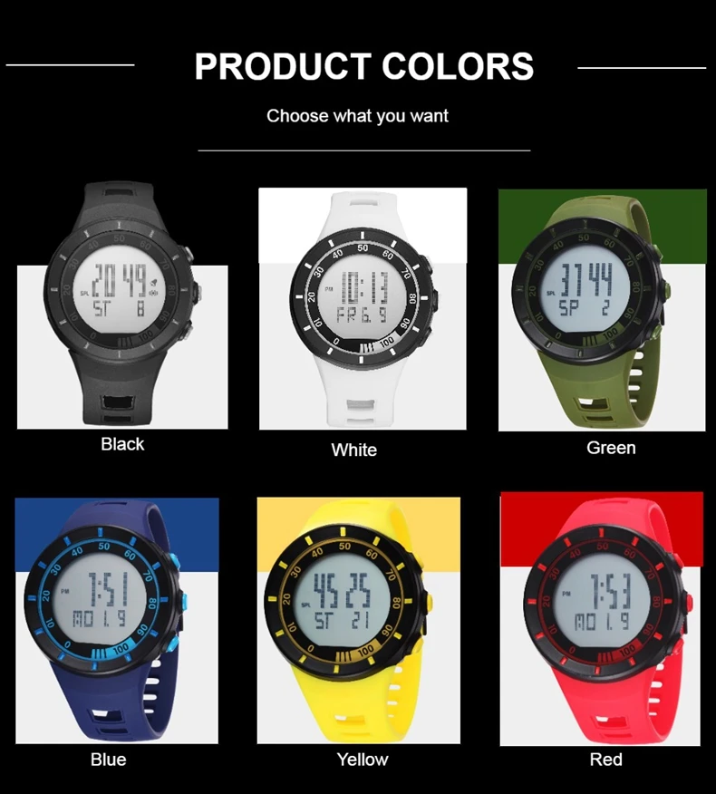 Цифровой: часы, минуты, секунды, вечера, месяц, дата, день Формат 12/24 часов Будильник и функция ежечасного звонка Специальная конструкция с хронограф (секундомер) при температуре не выше 0,01 второй шаг Водонепроницаемость до 50 м (не нажимайте кнопку в воде) Дополнительный ЖК-светильник для отображения времени в темноте Ударопрочный, идеально подходит как для наружных, так и для внутренних видов спорта, таких как бег, альпинизм, рыбалка и т. Д.