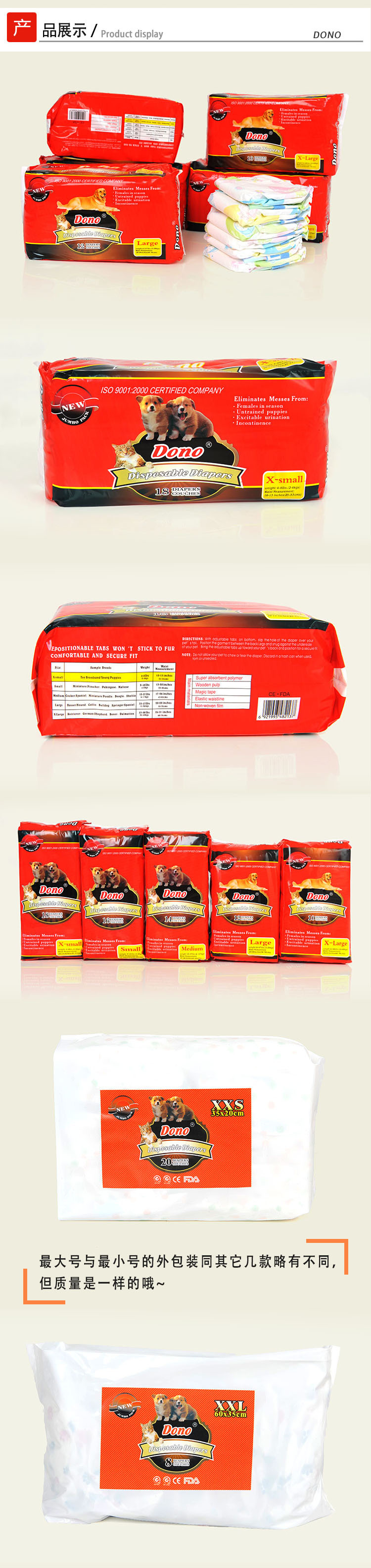 XXS 20 штукОбхват талии17 ~ 26 см, подходит для возраста от 1-3 кг собака