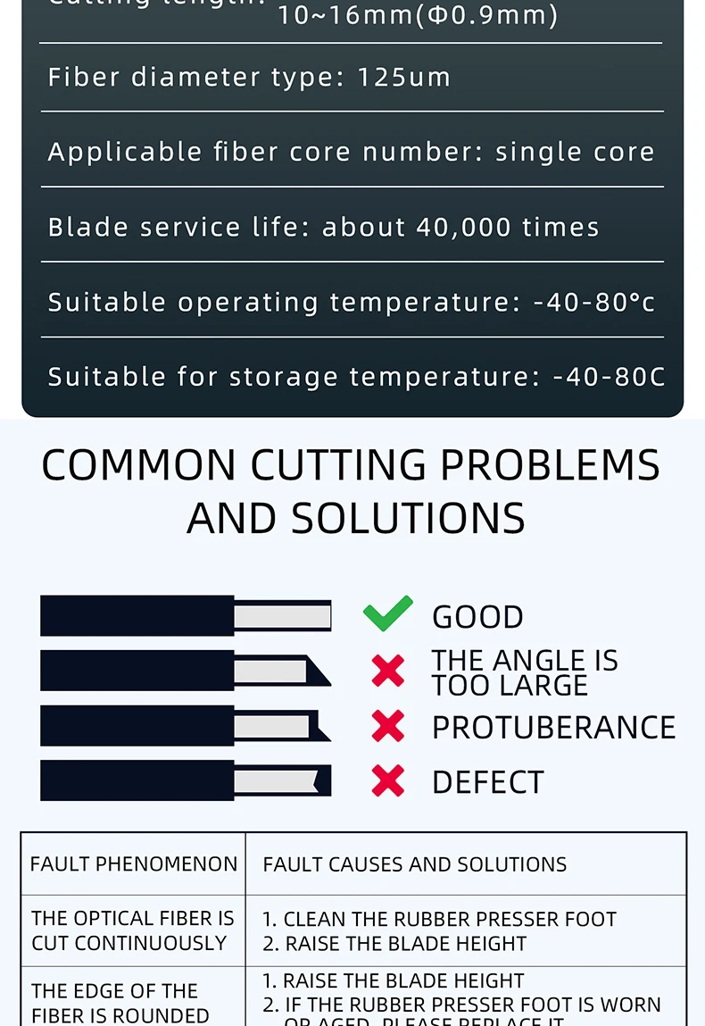 Клив Длина: 9 - 16 мм (одиночное волокно-0,25 мм покрытие) 10 - 16 мм (одиночное волокно-0,9 мм покрытие)