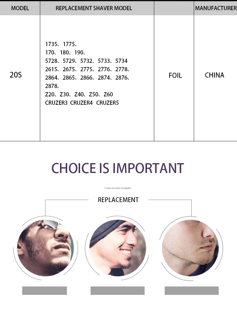 Item Description:Features: 1. 100% brand new and good quality. 2. Perfect replacement for your damaged shaver foil. 3. Designed with 1foil, 4. Compatible with 20S etc. Specifications: 1. Material: Metal 2. Color: silver 3. Compatibility: For model:2615 2675 2775 2776 2778 2864 28652866 2874 2876 2878 5732 5733 5734Z20 Z30 Z40 Z50 Z60Please confirm the model of the machine can be applied before the purchase! Package include 1 x foil