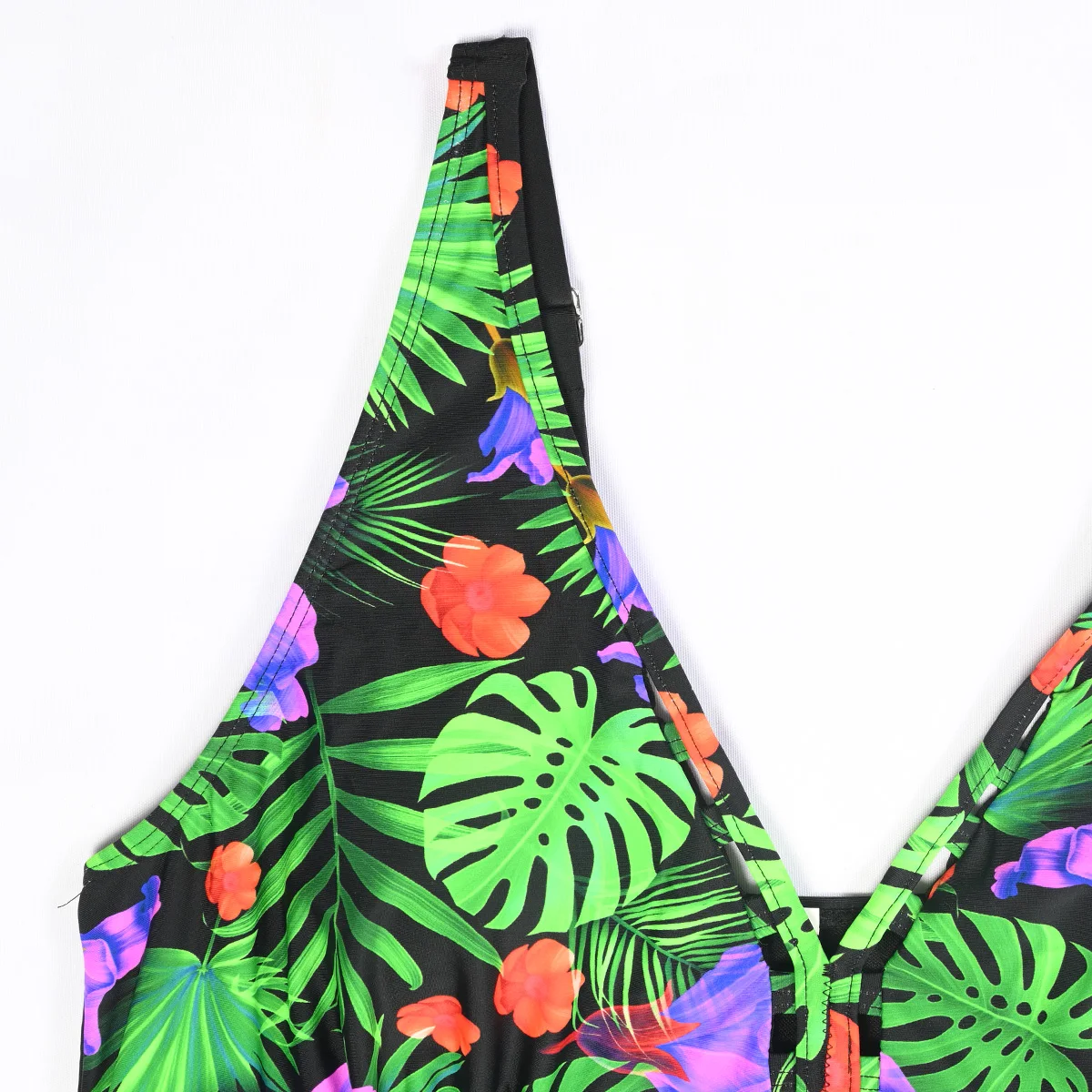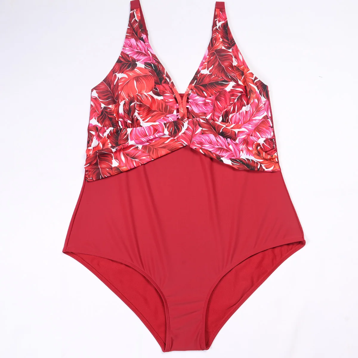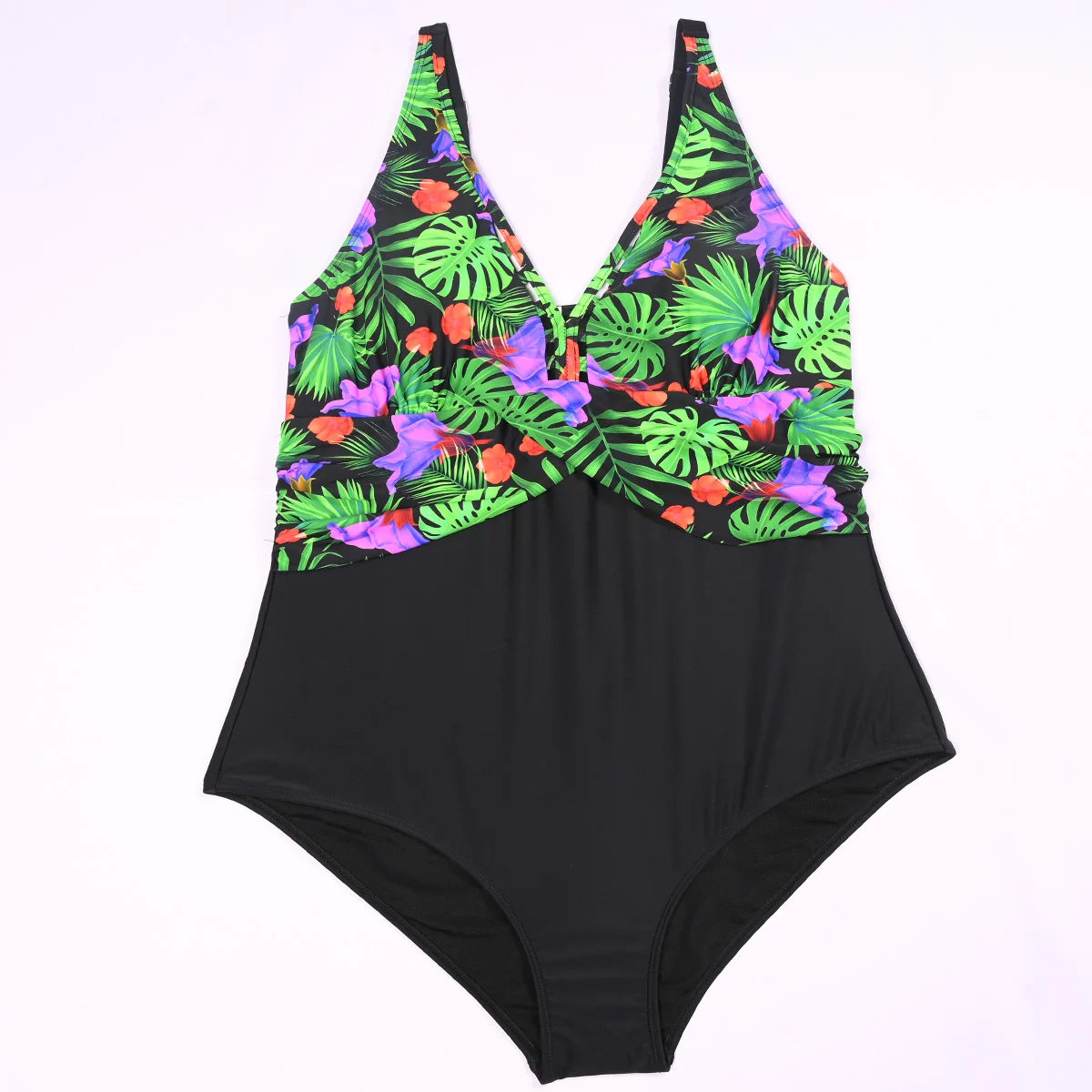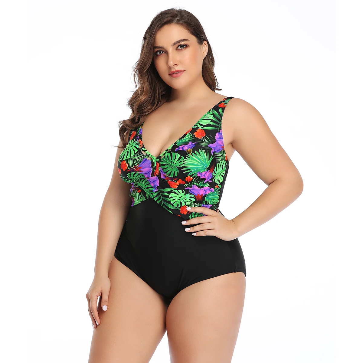 Купальный костюм с принтом, Цельный купальник для полных девушек, большой купальник с коротким рукавом, оборудование для дайвинга