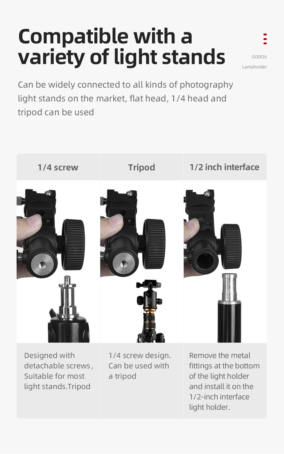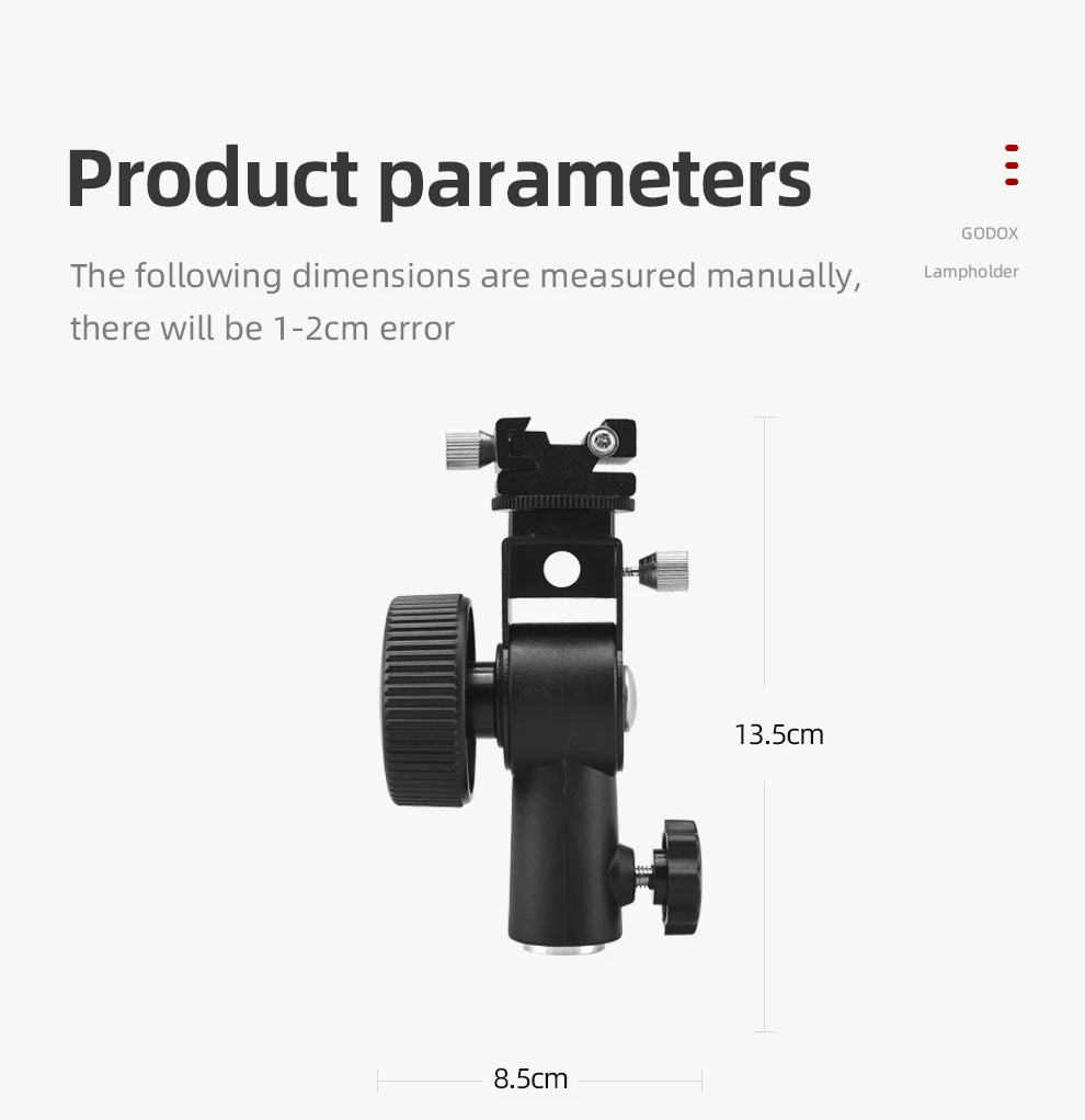 GODOX Тип D Вспышка Горячий башмак держатель зонта кронштейн для SpeedliteТипы: некоторые флэш-Кронштейны, называемые откидными кронштейнами, имеют вращающуюся руку, которая позволяет вспышке располагаться над камерой, независимо от того, снимаете ли вы горизонтально или вертикально. Есть также кронштейны, которые позволяют фотографу поворачивать камеруСпецификацияПолезный светильник-вспышка для камерыАдаптер Flashgun можно прикрепить к подставке на светильник, вставить вспышку и зонтик и отрегулировать крепление, чтобы он находился под оптимальным углом для получения отличных результатов фотосъемкиКрепление для вспышки Горячий башмак позволяет легко установить приемник датчика вспышки Горячий башмакВы также можете настроить зонтик и вспышку под разным углом, подходящим для всех вспышек горячего башмака, передатчика триггера или ведомогоМатериал: пластик и алюминийСодержит1 x держатель зонта для вспышки типа D![]()