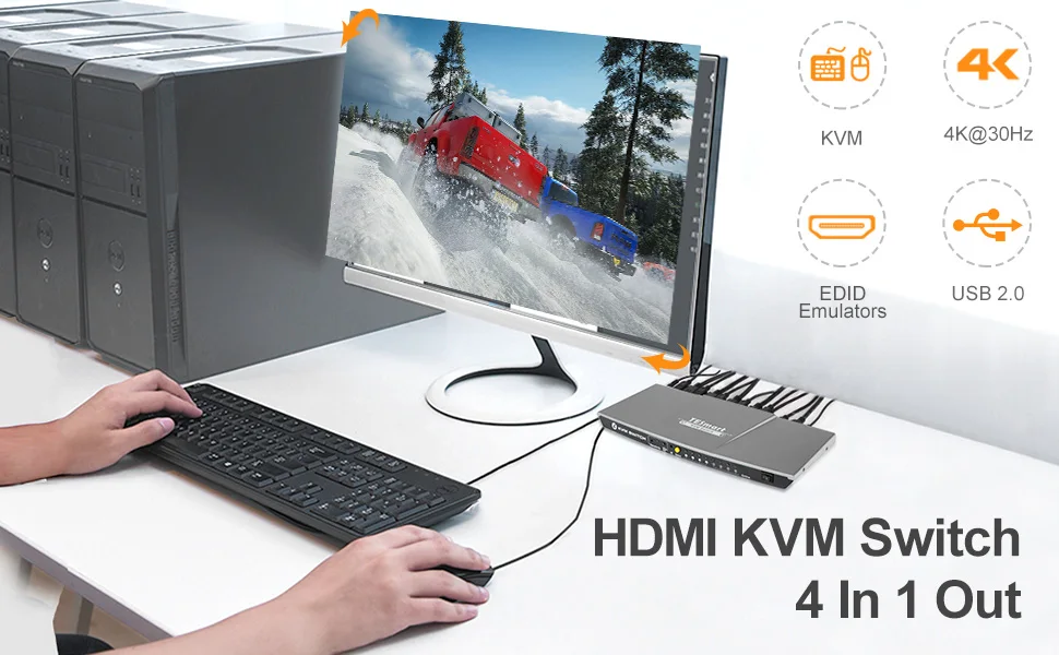 【 4 в 1 выход KVM переключатель 】совместимый стандарт HDMI 1,4 обеспечивает разрешение до 3840x2160 @ 30 Гц, если вам не нужно разрешение 4k @ 60 Гц, этот продукт будет более подходящим для вас.