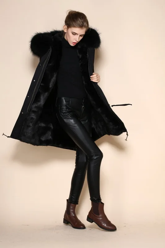 Продукт | Крутая черная парка из искусственного меха, Женская нейтральная парка 2016, зимнее пальто с капюшоном из меха енота |