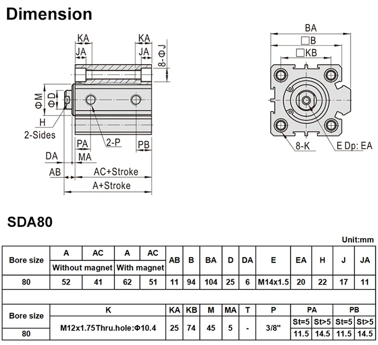 SDA80 * 100 Бесплатная доставка 80 мм диаметр 100 мм Ход Компактный воздушный цилиндр SDA80X100 двойного действия Воздушный пневматический цилиндр