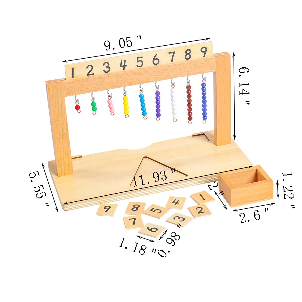 1. Деревянная вешалка для цветной лестницы из бисера с мелкой плиточкой от 1 до 9 и 1-9 цветных бусин 2. Помогите детям схватить расположение нескольких последовательных впечатлений для нескольких последовательных отношений. 3. Благодаря комбинации цифр и бусин дети могут лучше понимать абстрактные цифры и интуитивно понимать взаимосвязь между цифрами и количеством 4. Он изготовлен из высококачественной древесины, хорошего качества изготовления, влагостойкий и износостойкий, гладкий и без заусенцев, для защиты рук ребенка 5. Отличный домашний или учебный материал для раннего обучения, улучшает интересы детей к счету. Используется в математических занятиях, чтобы помочь детям понять сложение и вычитание, а также другие математические навыки.
