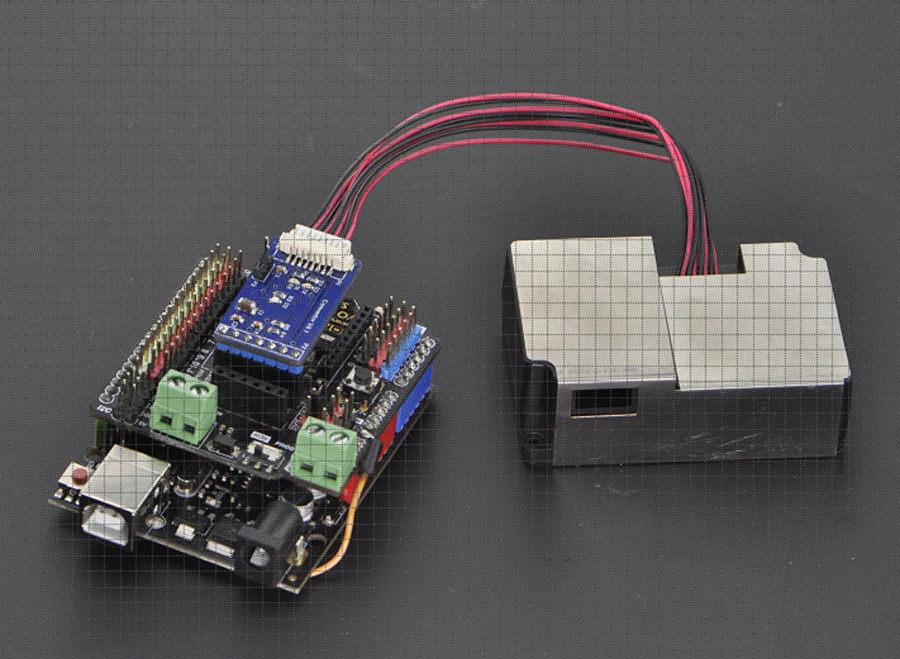 Если у вас есть расширительный Щит IO, вы можете просто вставить адаптер датчика PM2.5 на него, и вы можете использовать последовательный для мониторинга данных.