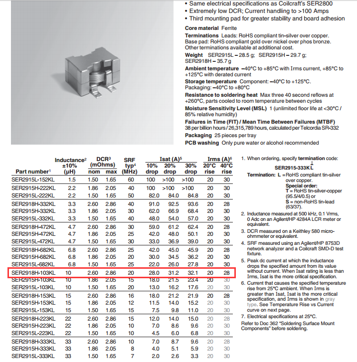 Большой громкий индуктор FALCO 10uH 30A 27*27*15 большой объем гигантской мощности, LTC 3780 и другие мощные шаг вверх и шаг вниз обычно используется