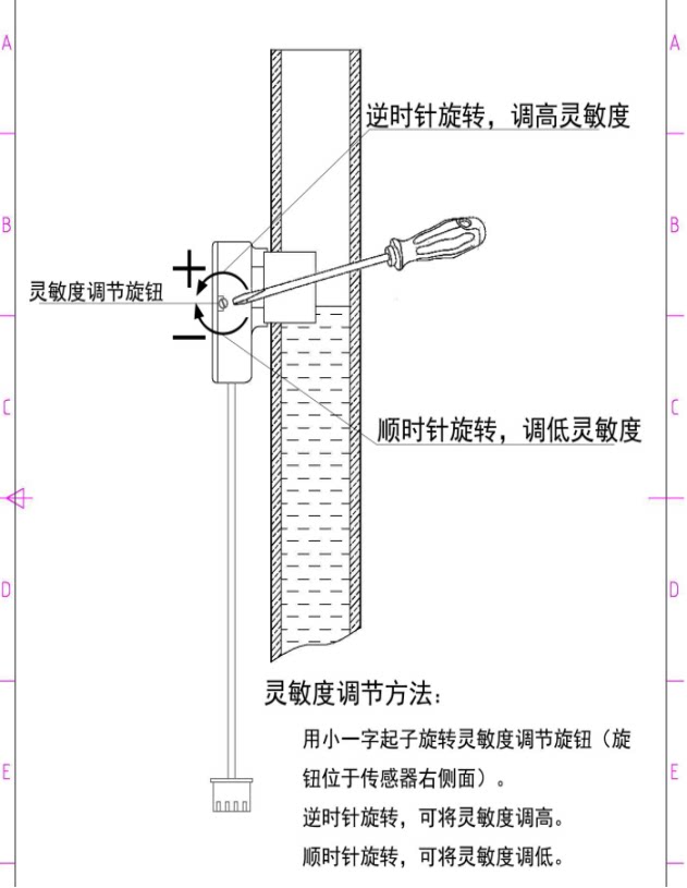 Девять, обслуживание продукта1. Обратите внимание на поддержание чистоты манометра, насколько это возможно, чтобы предотвратить коррозию и избежать столкновения других объектов, удары.2. Наружная установка должна избегать прямого измерения уровня солнечного света в основном корпусе, вдали от источника тепла и обратить внимание на вентиляцию, если температура окружающей среды превышает номинальную температуру, следует принять соответствующие меры охлаждения.3, температура окружающей среды слишком низкая, может использоваться для защиты приборной коробки или других защитных устройств для защиты от замораживания, и обратите внимание на поддержание уровня сухости.4. Датчик должен регулярно проверяться на техническое обслуживание. Интервал обнаружения Определяется пользователем в соответствии с конкретными обстоятельствами.Десять, устранение неполадокСостояние неисправностиАнализ причинМеры по разрешениюПосле того, как датчик уровня жидкости заряжен, нет реакции (уровень воды достигает индукционного точечного индикатора, индикатор не светится, регулировка чувствительности не реактивная)Источник питания не очень хорошийПроверьте и подключите источник питанияПоложительная и отрицательная клемма шнура питанияПравильная проводкаПовреждение модуля питанияМонтажная плата для замены силового модуляНизкая чувствительностьОтрегулируйте чувствительность на соответствующую передачуСвет включенВысокая чувствительность сдвигаОтрегулируйте чувствительность на соответствующую передачуПараметры инициализации измененыВозврат на заводДатчики с мусором или другими металлическими деталямиОчистите мусор и держите расстояние от металлических деталей