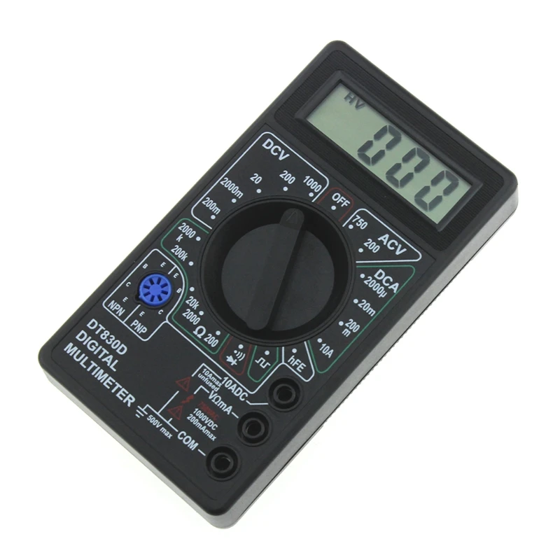3 1/2 цифровой ЖК-дисплей, максимальный дисплей 1999 Индикация низкого заряда батареи Защита от перегрузки (0.5A/250V предохранитель, 10A без предохранитель) Тестирование диодов и транзисторов, измерение непрерывности и зуммера С тестовым зондом, широкий спектр применения Поставляется с зуммером, карманом и легко носить с собой, экономично Спецификация: Название продукта: Цифровой мультиметр Диапазон измерения напряжения постоянного тока: 200 мВ-1000 В, уровень точности: ±(1.0% + 2dgt) Диапазон измерения напряжения переменного тока: 200-750 В, уровень точности: ±(2.0% + 10dgt) Диапазон измерения тока постоянного тока: 200μA-200mA, уровень точности: ±(1.5% + 2dgt) Диапазон измерения сопротивления: 200Ω-2000KΩ, уровень точности: ±(1.2% + 2dgt) Инструкции по эксплуатации: Во избежание опасности поражения электрическим током и/или повреждения прибора. Не измеряйте напряжение, которое может превышать 500 В над землей. Перед использованием прибора проверьте Тестовые провода, разъемы и зонды для трещин или тяги в изоляции Диод и Триод: Да Источник питания: аккумулятор 9V.ONE Макс. Дисплей: 1999 Размер: 122*67*21 мм Цвет: черный Количество: 1 шт. Упаковка: 1 Цифровой мультиметр (без аккумулятора) 1xOperator's руководство по эксплуатации Термоэлектрическая пара типа K (опционально)