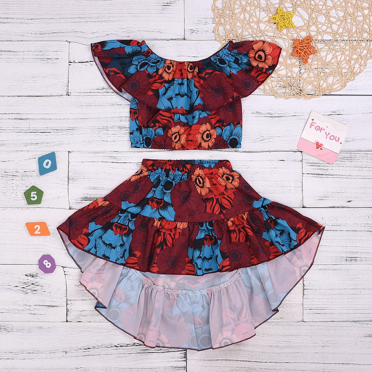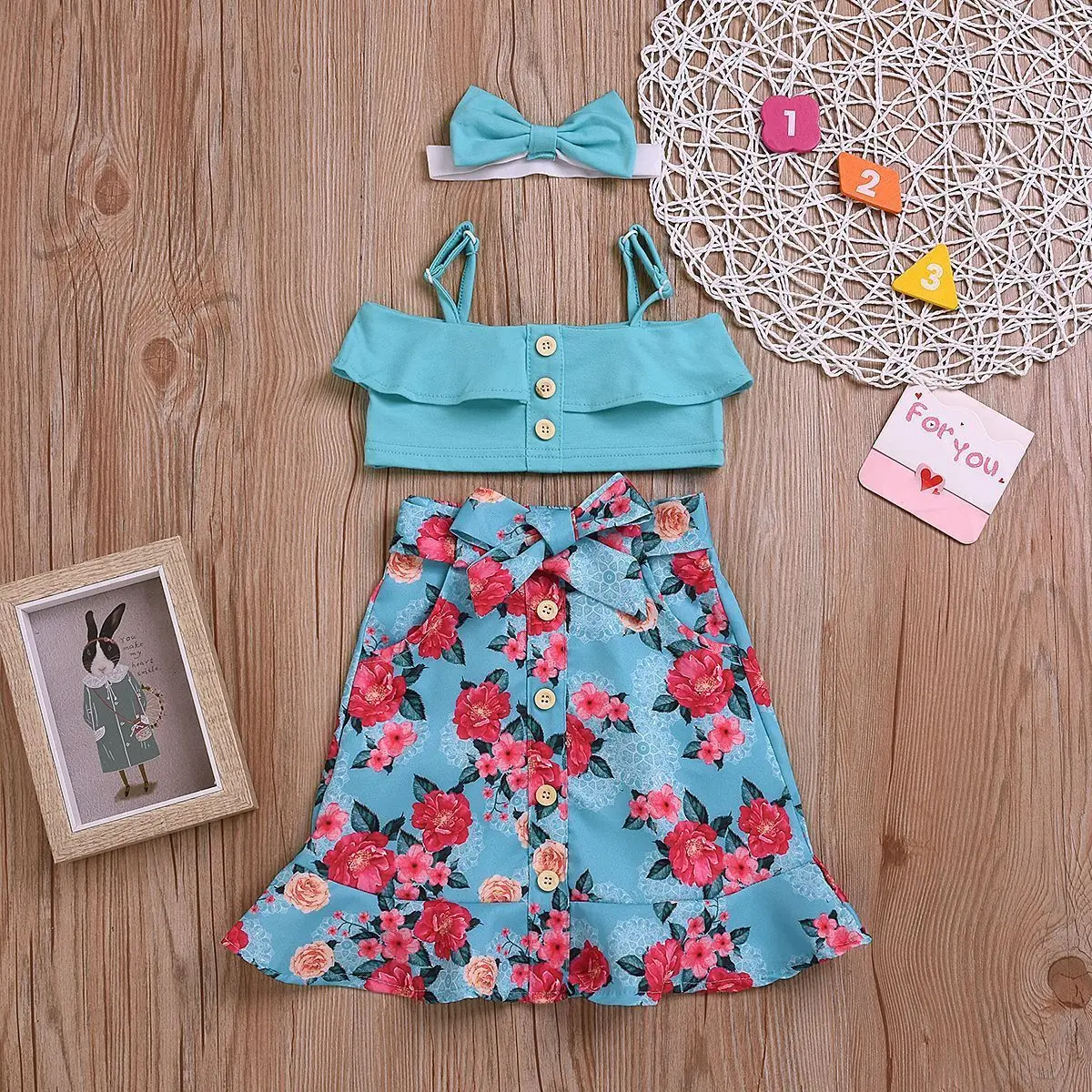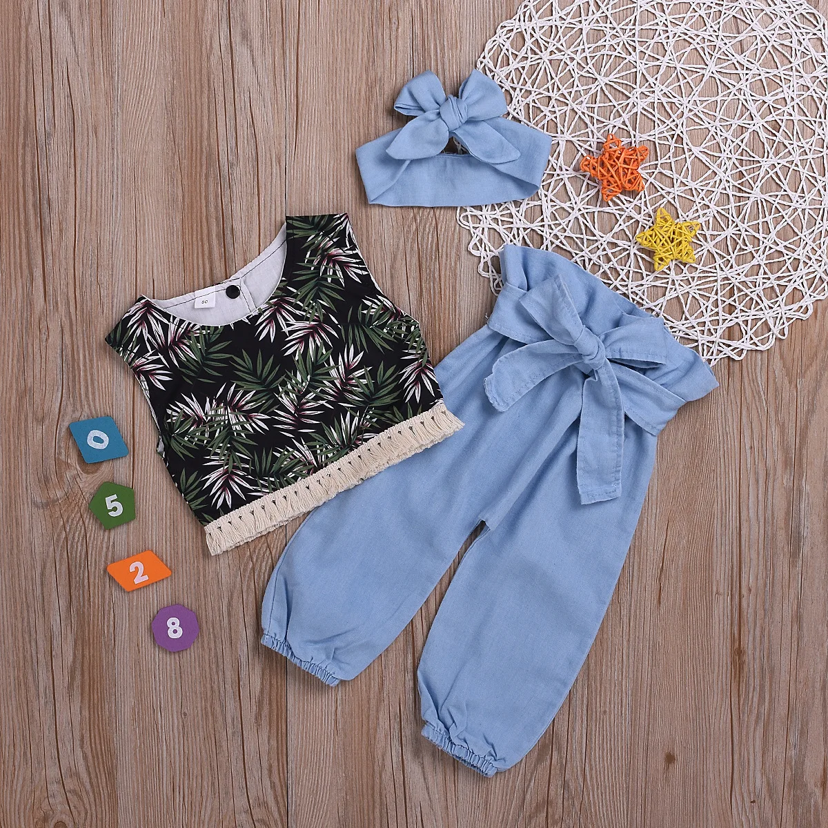 Ins/Новое поступление, Модный комплект для девочек, топ и штаны, комплект из 2 предметов, Цветочная повязка на голову, камуфляжный комплект с юбкой, комплект детской одежды с леопардовым принтом, 2019