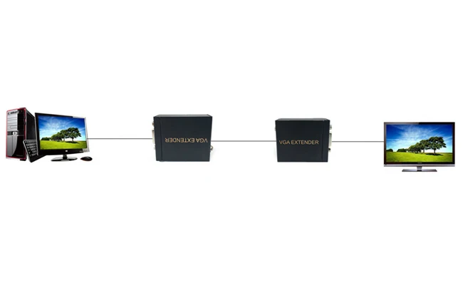 Устройство расширения сигнала VGA включает в себя излучатель сигнала и приемник сигнала, передатчик подключен к хосту-это VGA сигнал в кабельный сигнал, приемник будет передавать сигнал в VGA сигнал подключен к дисплею, VGA сигнал, который называется кабелем вместо VGAtransmission линии расширения устройства. Может поддерживать различные компьютерные операционные системы, Поддержка жесткого диска видео регистратора мониторинга хост VGA интерфейс оборудования, с супер пять/шесть типов кабеля может быть, чисто физический дизайн оборудования, без внешнего источника питания, без настройки, без драйвера, подключи и работай, удобно и быстро. Это единственный проект сетевого подключения артефакта. Принцип работы: через 1 высококлассную сеть 5 или шесть классов передача сигнала на дальние расстояния до VGA расширена до 60 метров использования.
