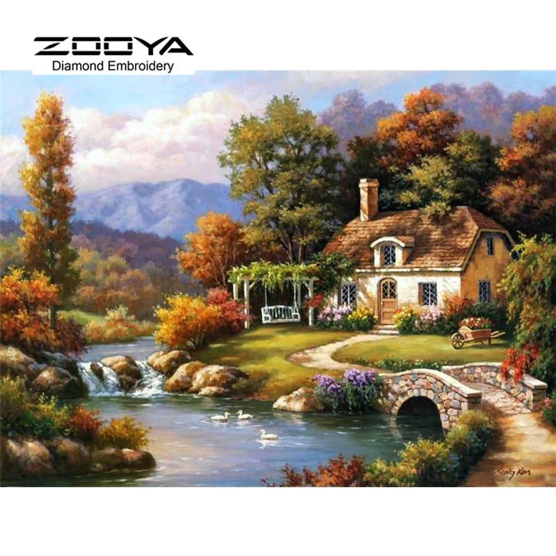5D DIY Алмазная вышивка, вышивка крестиком, горные дома, украшение для дома, полное мозаичное ремесло, 3d набор для рукоделия BJ280